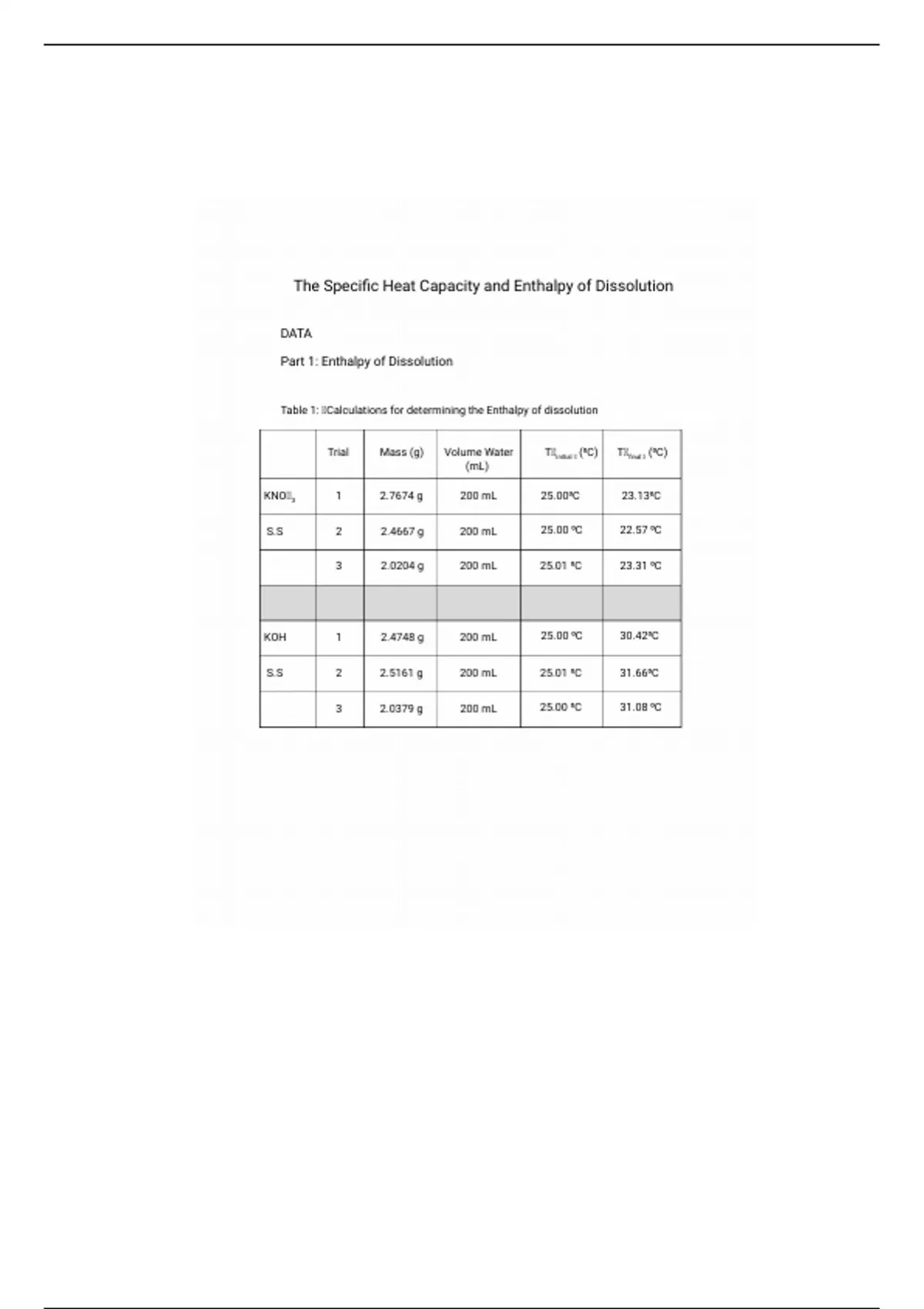 This is a comprehensive and detailed lab report on;The specific heat capacity and enthalpy of dissolution. An Essential Study Resource just for YOU!