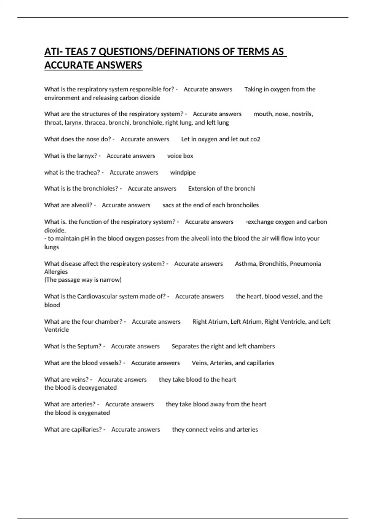 ATI- TEAS 7 QUESTIONS/DEFINATIONS OF TERMS AS ACCURATE ANSWERS