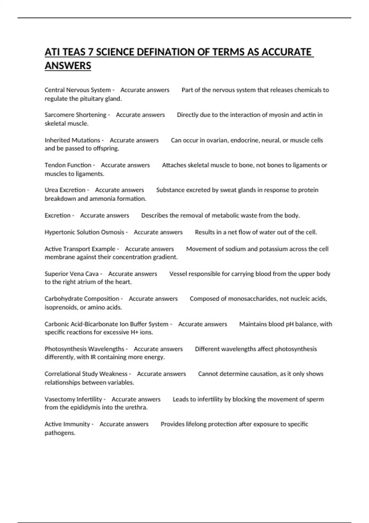 Excretion - Accurate answers Describes the removal of metabolic waste from the body.