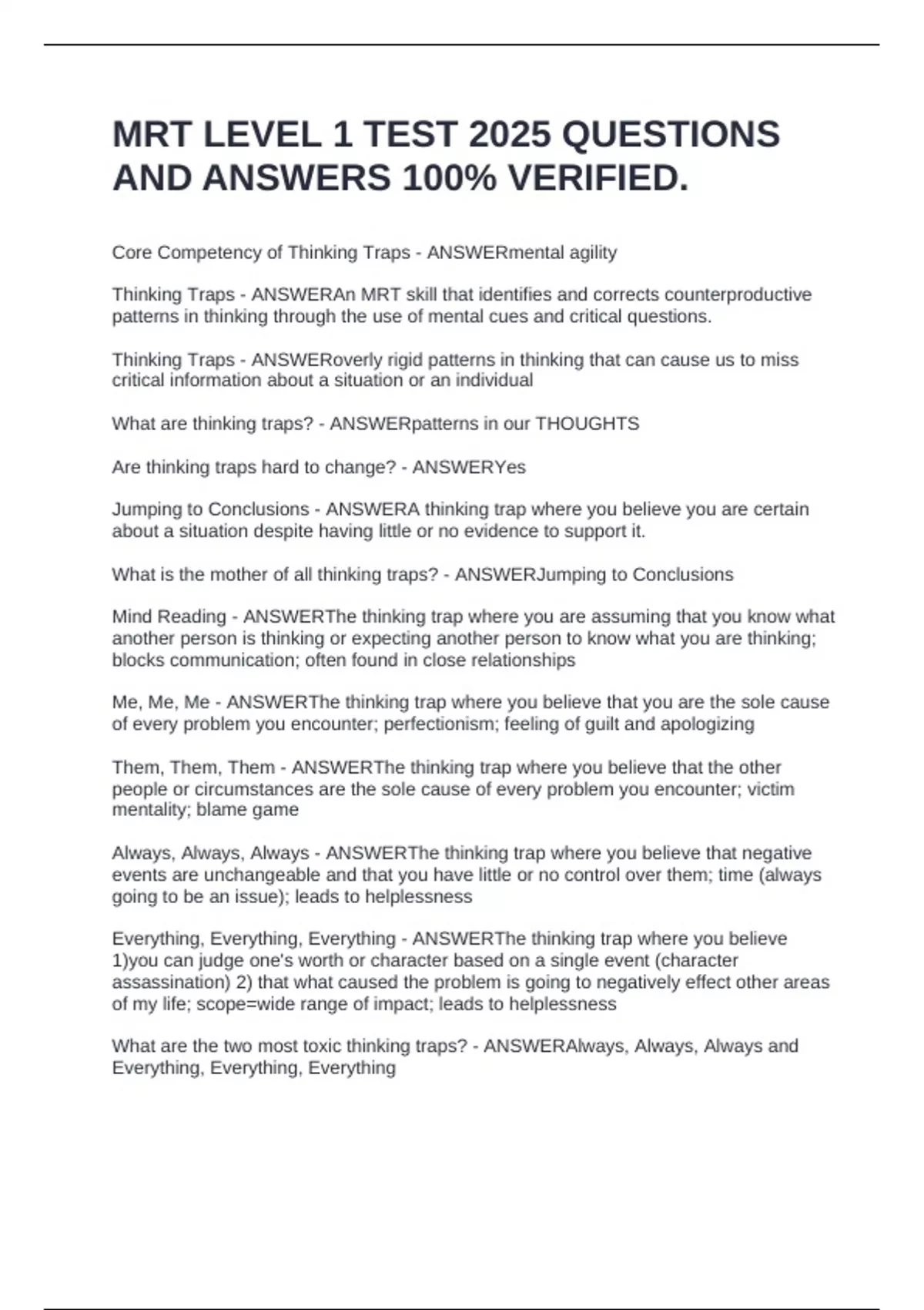 Thinking Traps - ANSWERAn MRT skill that identifies and corrects counterproductive