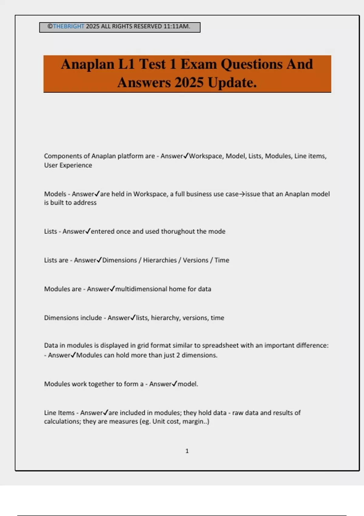 Components of Anaplan platform are - Answer✔Workspace, Model, Lists, Modules, Line items,