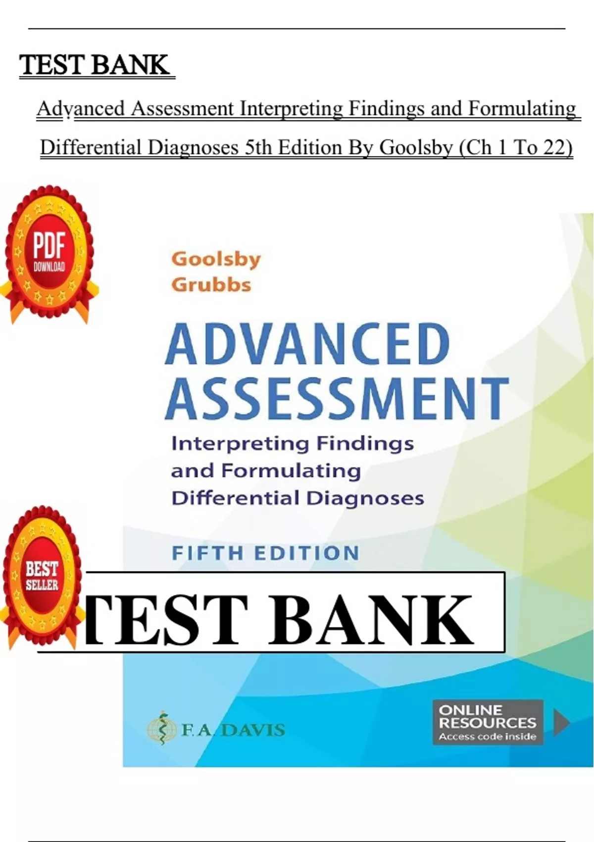 Test Bank For Advanced Assessment Interpreting Findings and Formulating Differential Diagnoses 5th Edition By Goolsby (Ch 1 To 22) Update (pdf file )