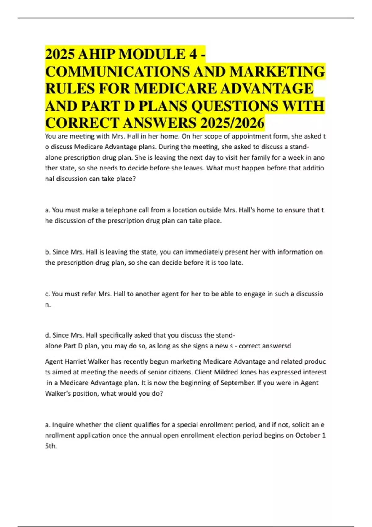 "Welcome to Excellnote! Your ultimate source for high-quality, exam-ready study materials designed to help you excel in your toughest courses and certifications. I specialize in turning complex course material into clear, structured, and verified learning resources." "My library is continually updated and curated to ensure you have the most recent and relevant materials for your academic success. You will find:" -Comprehensive Exam Elaborations: Detailed question-and-answer sets for common exams, certifications, and course assessments. -Verified Solution Manuals: Step-by-step solutions for textbooks and complex problem sets. -Subject-Specific Question Banks: Extensive collections of practice questions with 100% verified answers for subjects like Nursing (HESI, ATI, NCLEX), Finance (CFA), Accounting, IT, and more. -In-Depth Study Guides: Focused summaries and revision notes created from official course materials and recommended texts. -Package Deals: High-value bundles combining multiple documents (like question banks and study guides) for maximum preparation and savings. I as Excellnote am committed to quality and academic rigor:A+ Grade Focus: Every document is meticulously prepared and cross-referenced to target the knowledge required for an A+ grade or a guaranteed exam pass.Timeliness & Accuracy: I prioritize providing the latest versions of study materials, often labeling them with the current academic year (e.g., 2025/2026) to ensure you are studying the most up-to-date content.Structured for Success: Documents feature clear formatting, logical organization, and are designed for quick and effective review, saving you countless hours of preparation time.Buyer Trust & Reputation: I am committed to a high standard of service, as reflected by positive reviews and repeat customers. Your satisfaction is my top priority. "Ready to simplify your study process and boost your grades? Click 'View All Documents' to browse my complete catalog. If you have any questions about a specific document, course, or exam, please feel free to send me a message. I am here to help you achieve academic excellence."