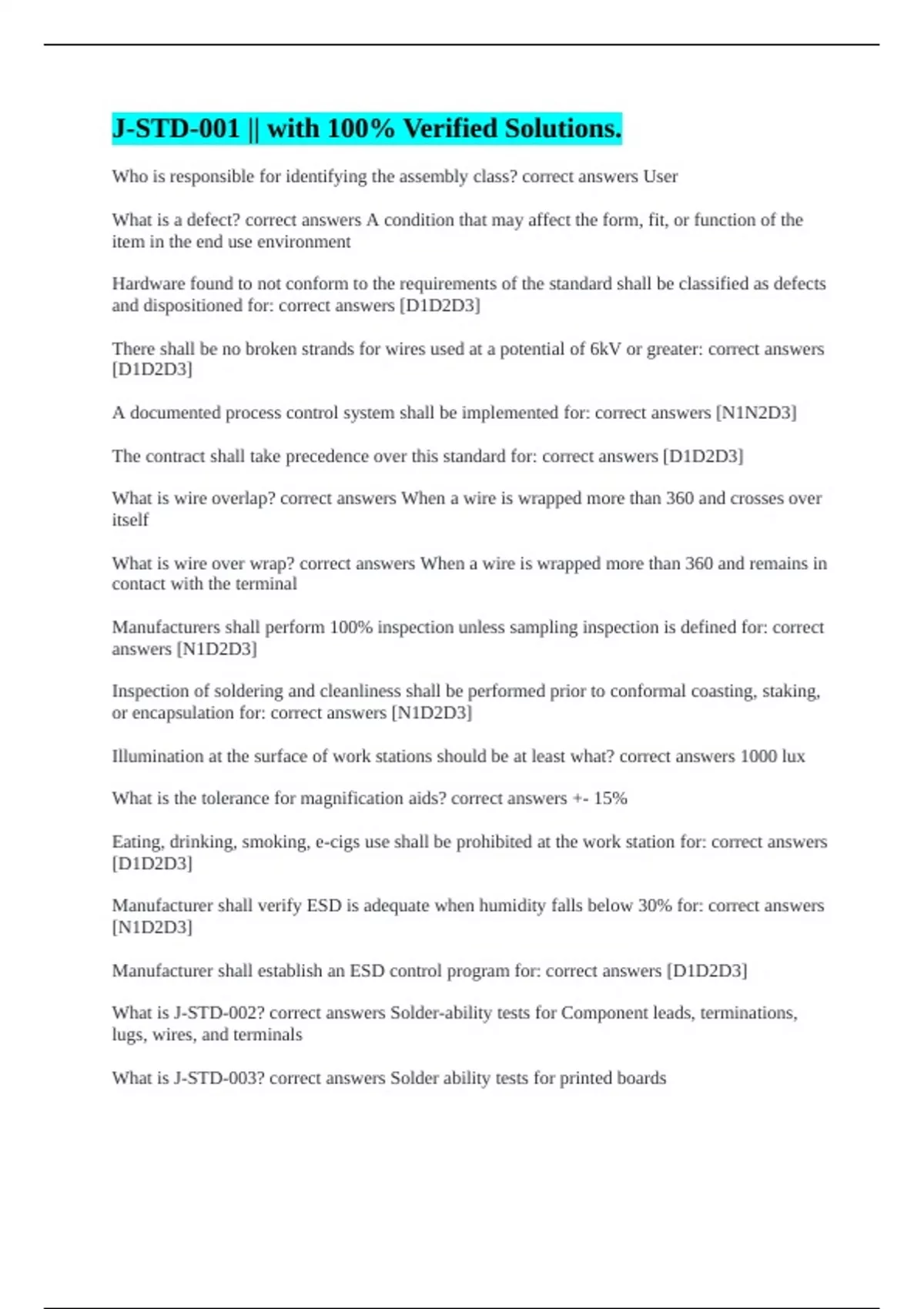 What is J-STD-003? correct answers Solder ability tests for printed boards