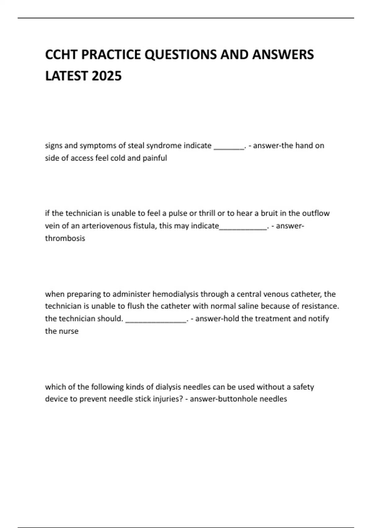 CCHT PRACTICE QUESTIONS AND ANSWERS LATEST 2025