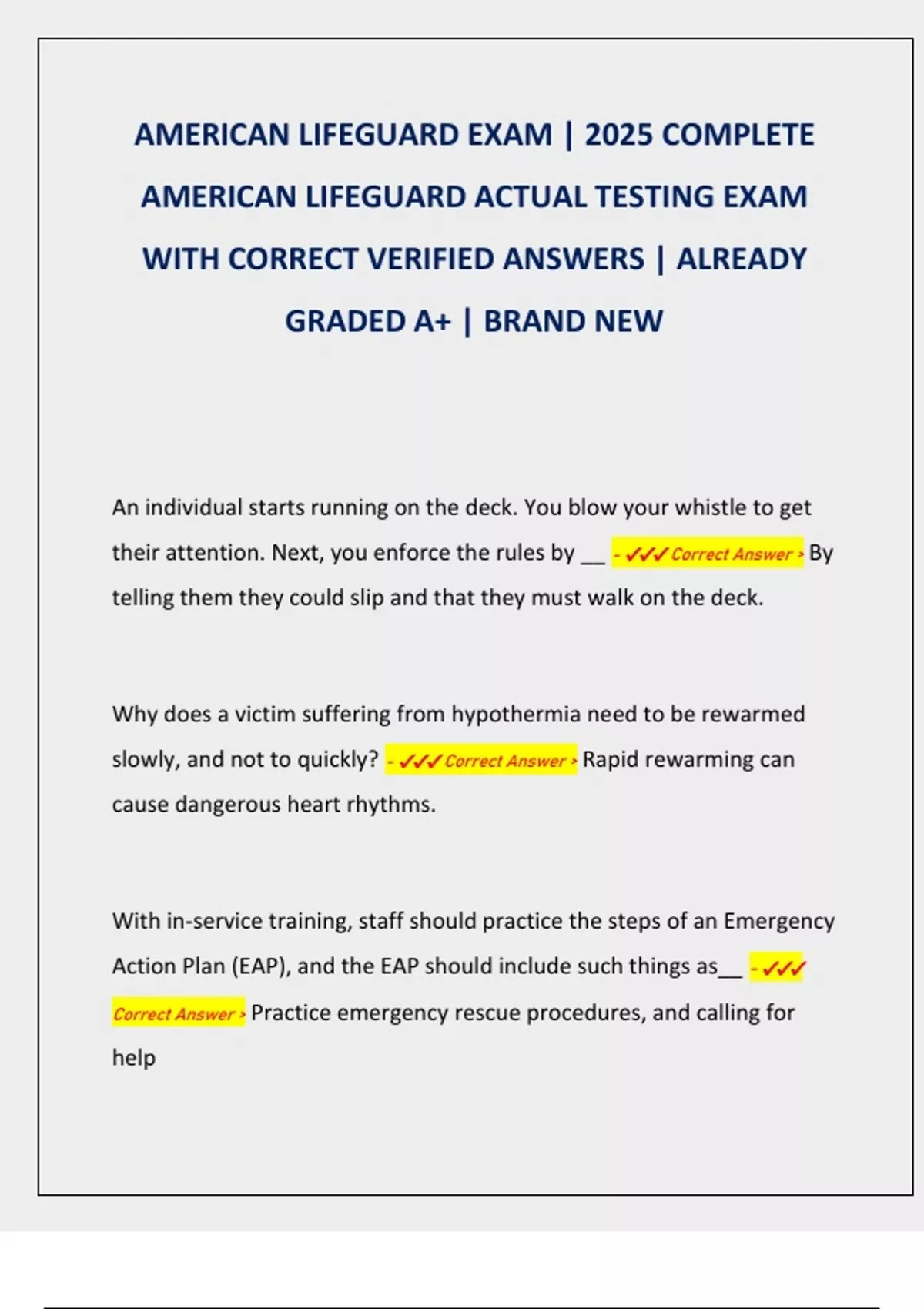 AMERICAN LIFEGUARD ACTUAL TESTING EXAM
