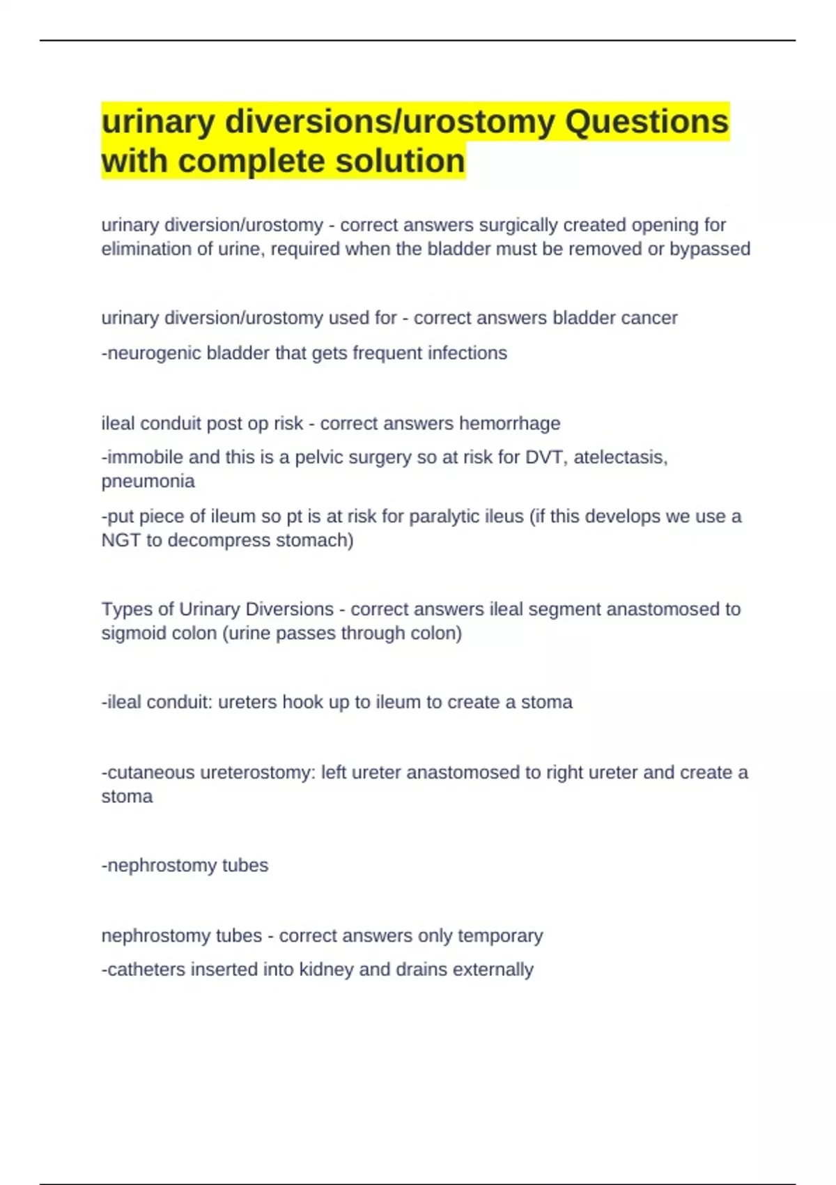 urinary diversion/urostomy used for - correct answers bladder cancer