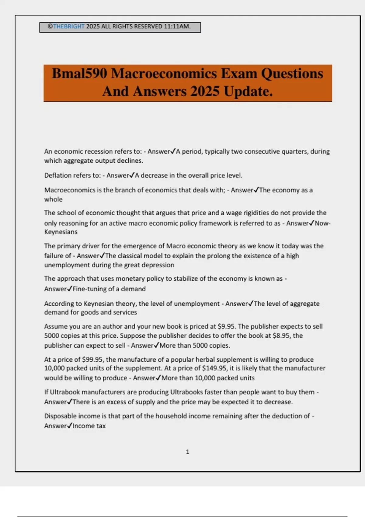Bmal590 Macroeconomics Exam Questions