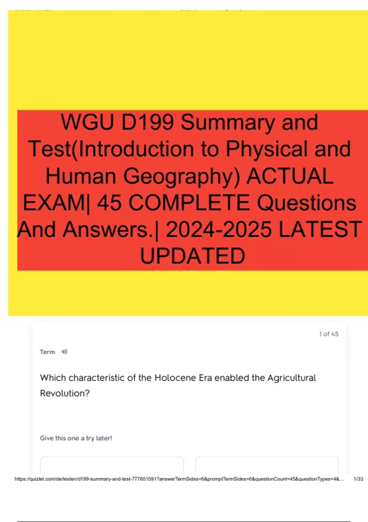 WGU D199 Summary and Test(Introduction to Physical and Human Geography) ACTUAL EXAM| 45 COMPLETE Questions And Answers.| LATEST UPDATED