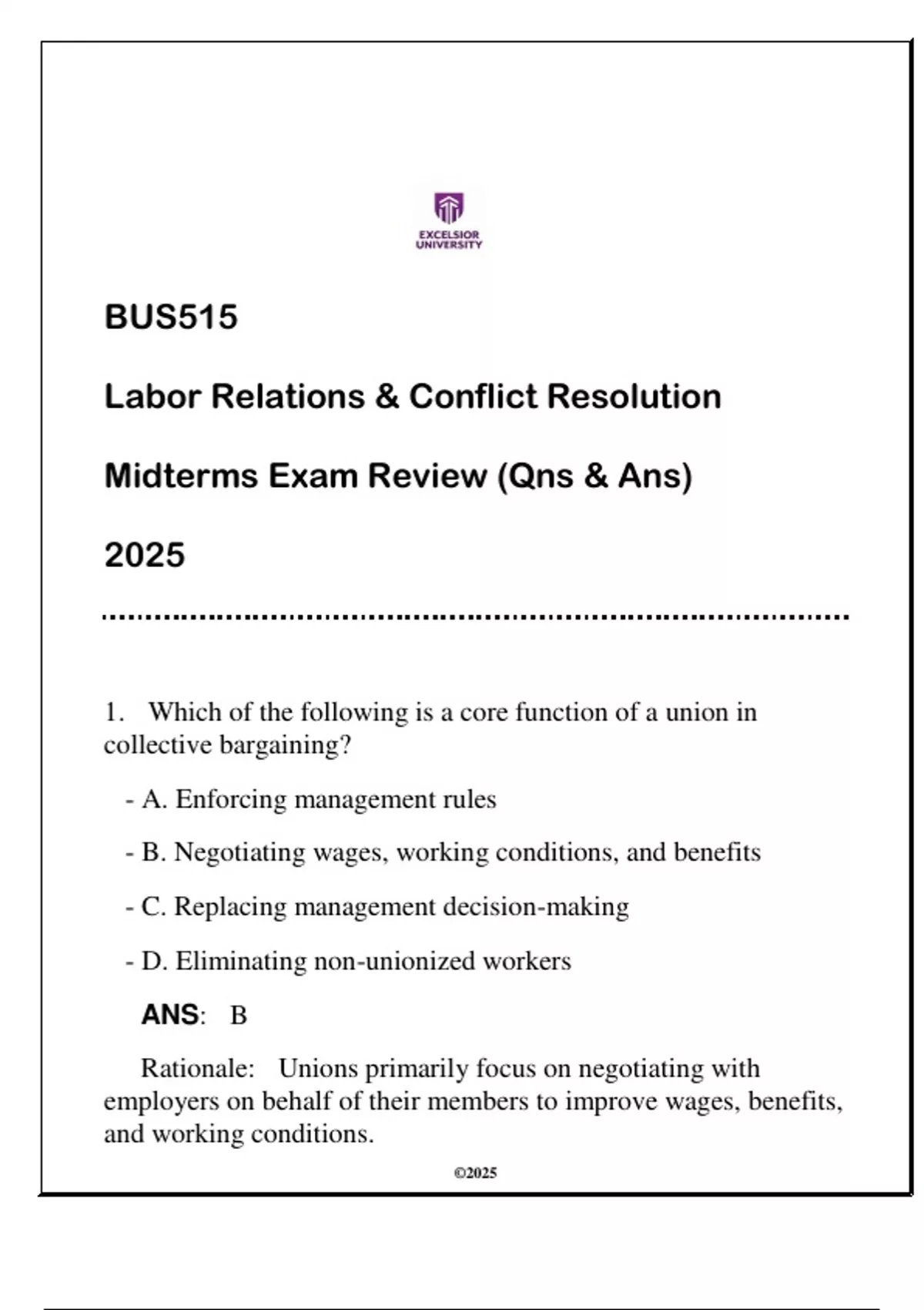 Rationale: Unions primarily focus on negotiating with
