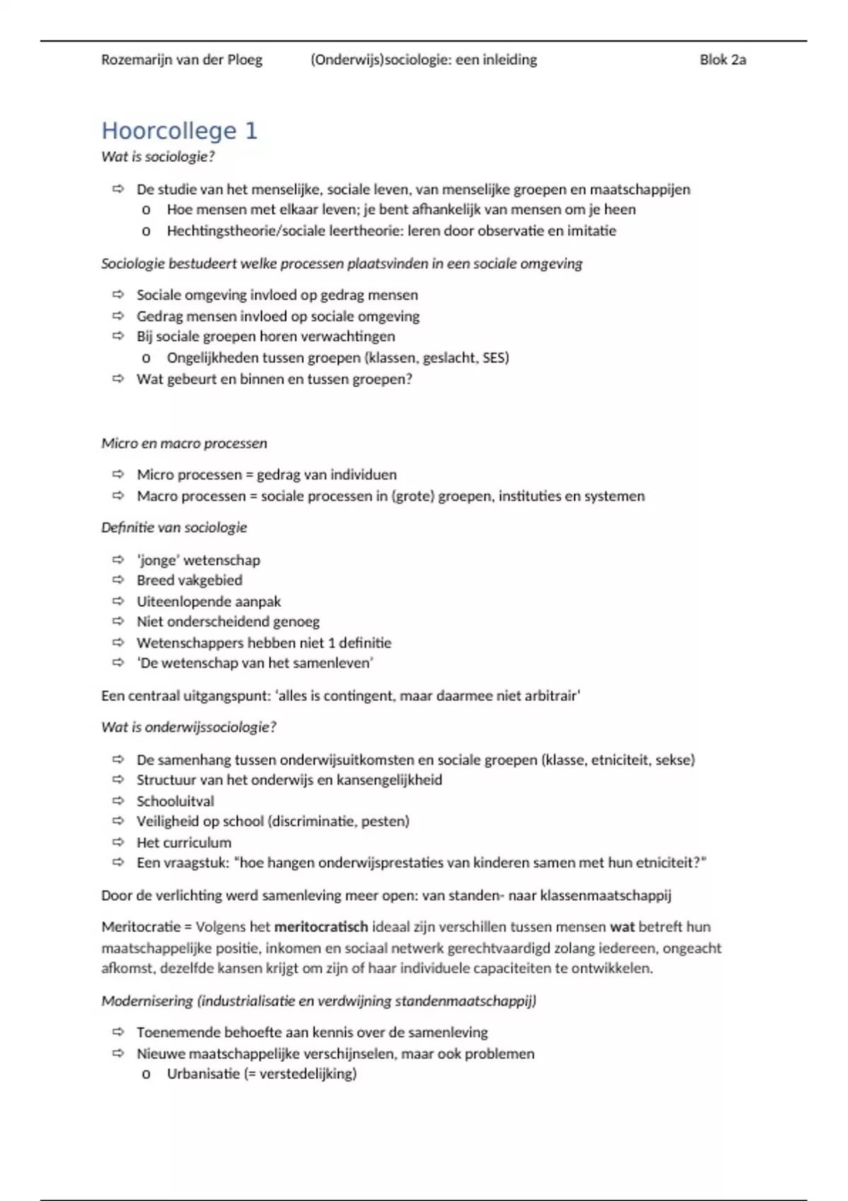 , Rozemarijn van der Ploeg (Onderwijs)sociologie: een inleiding Blok 2a
