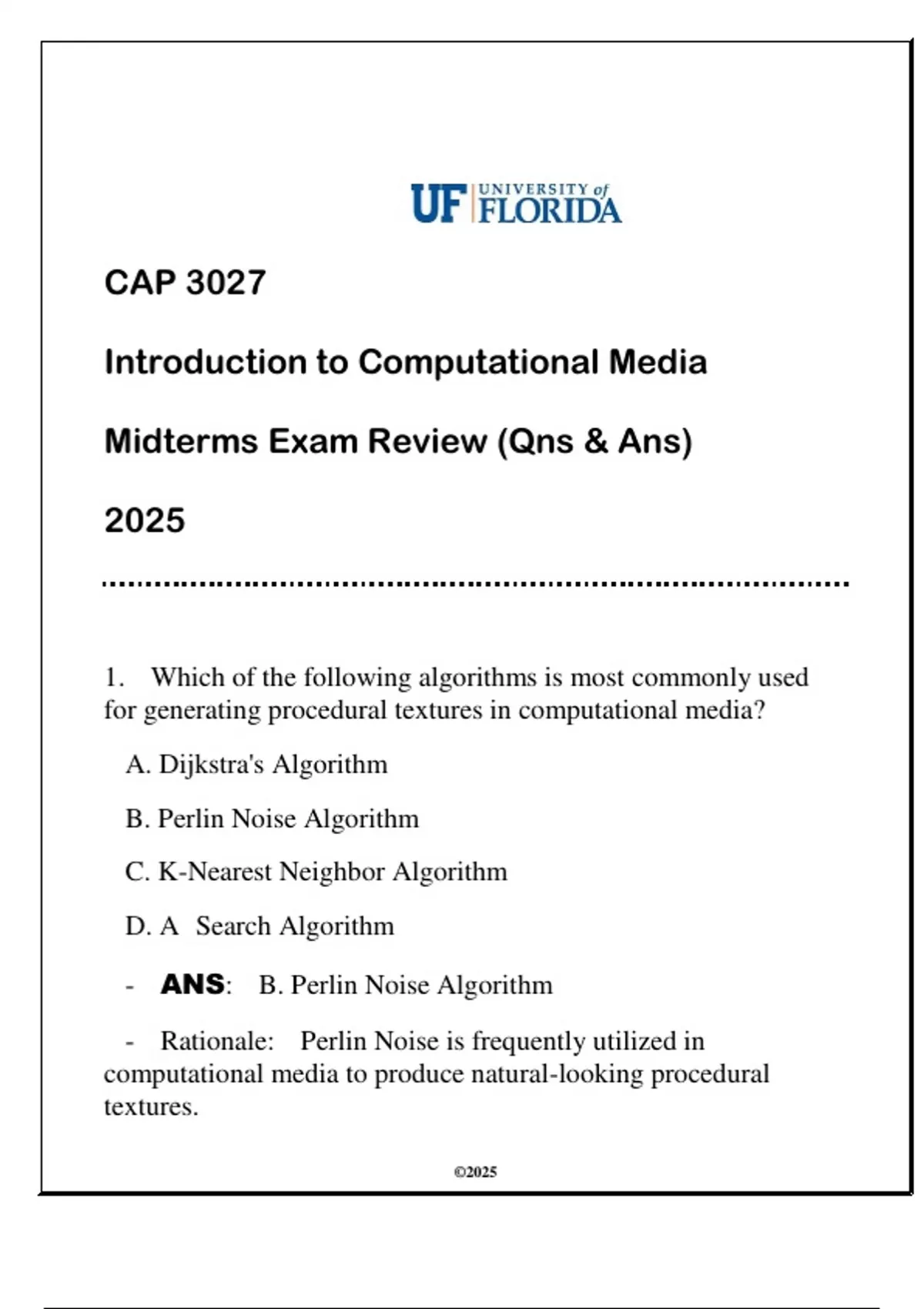 - ANS: B. Perlin Noise Algorithm