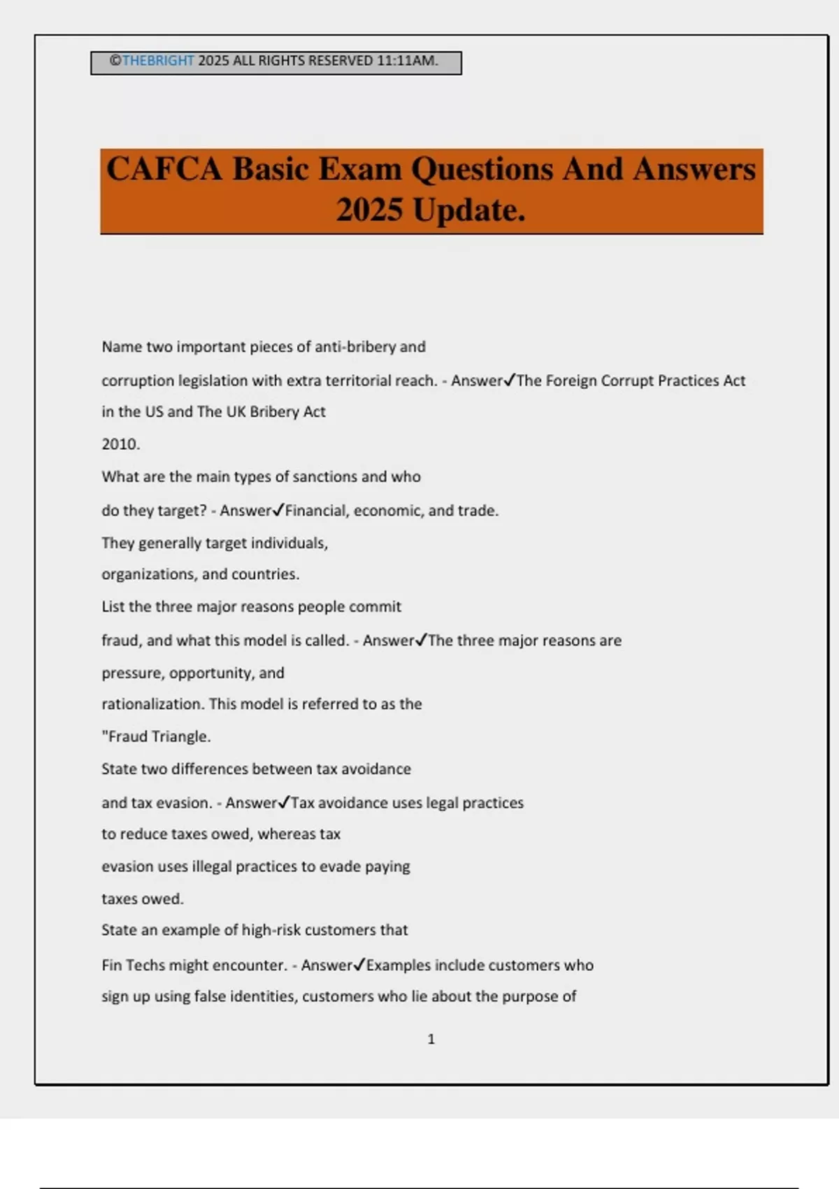 CAFCA Basic Exam Questions And Answers