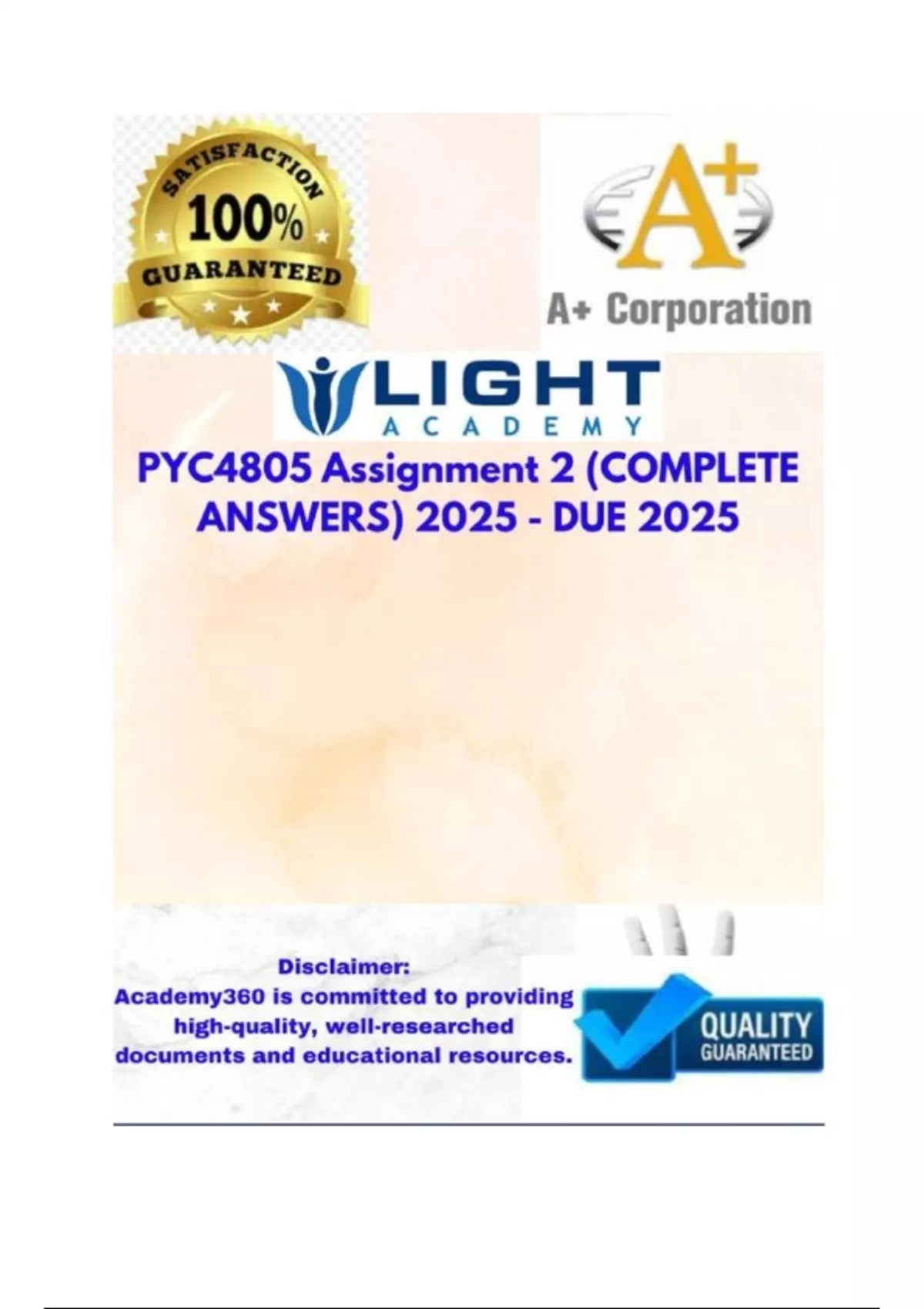 PYC4805 Assignment 2 (COMPLETE ANSWERS) 2025 - DUE 2025; 100% TRUSTED Complete, trusted solutions and explanations