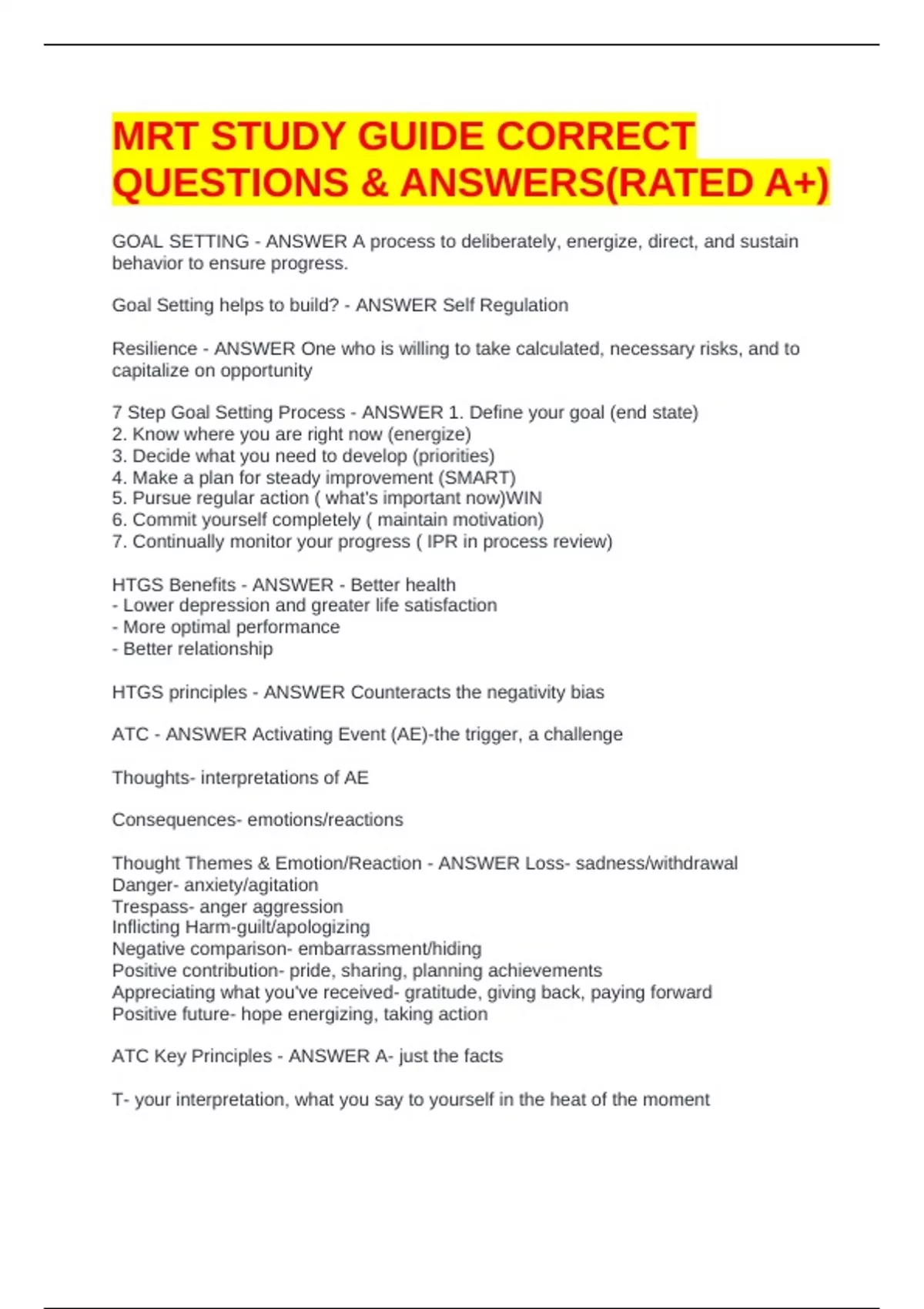 MRT STUDY GUIDE CORRECT