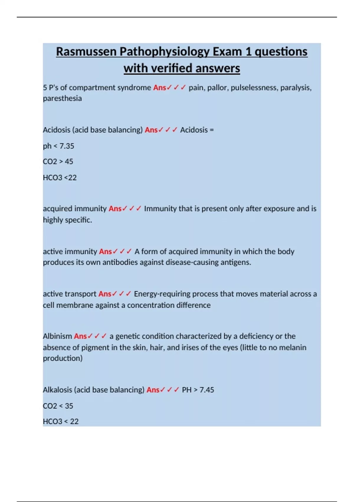 Rasmussen Pathophysiology Exam 1 questions with verified answers.