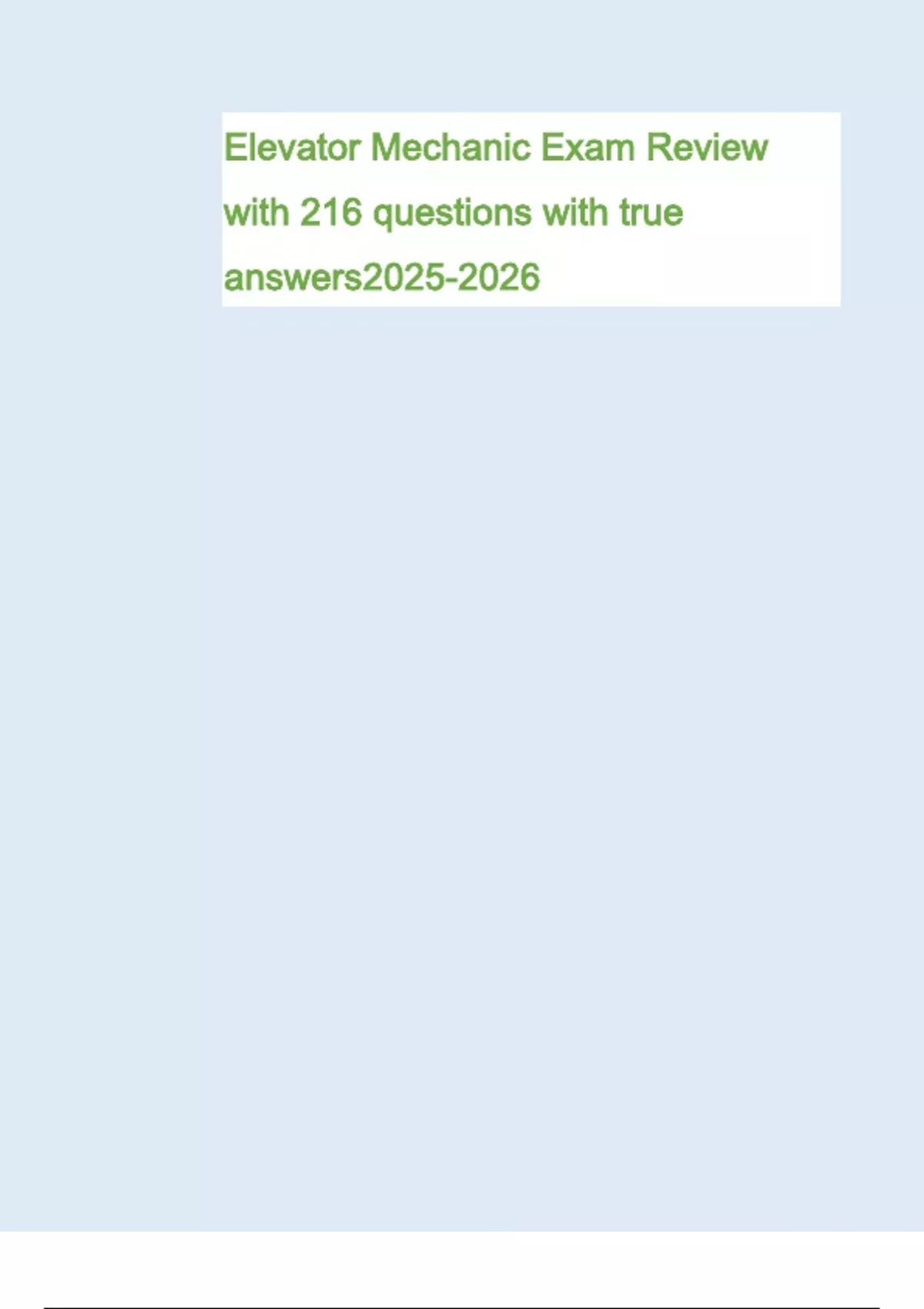 Elevator Mechanic Exam Review