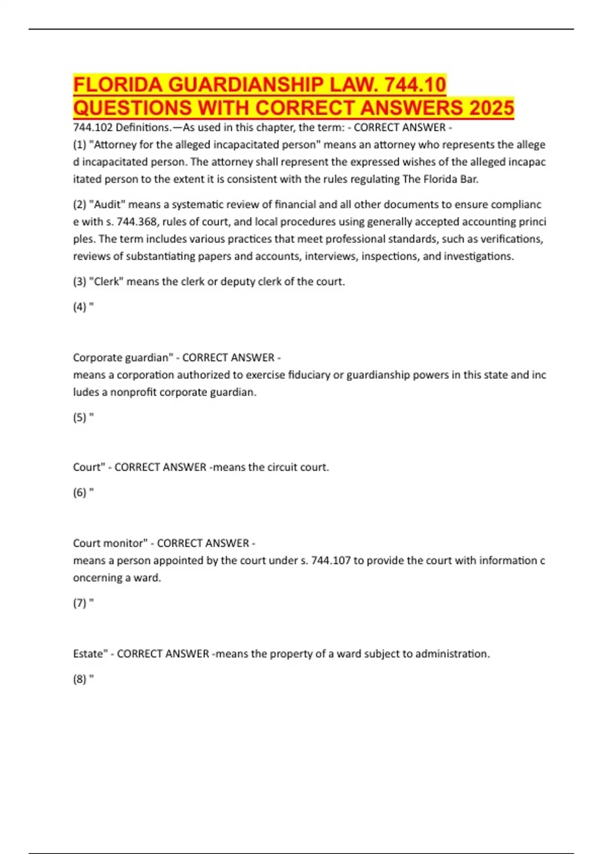 QUESTIONS WITH CORRECT ANSWERS 2025