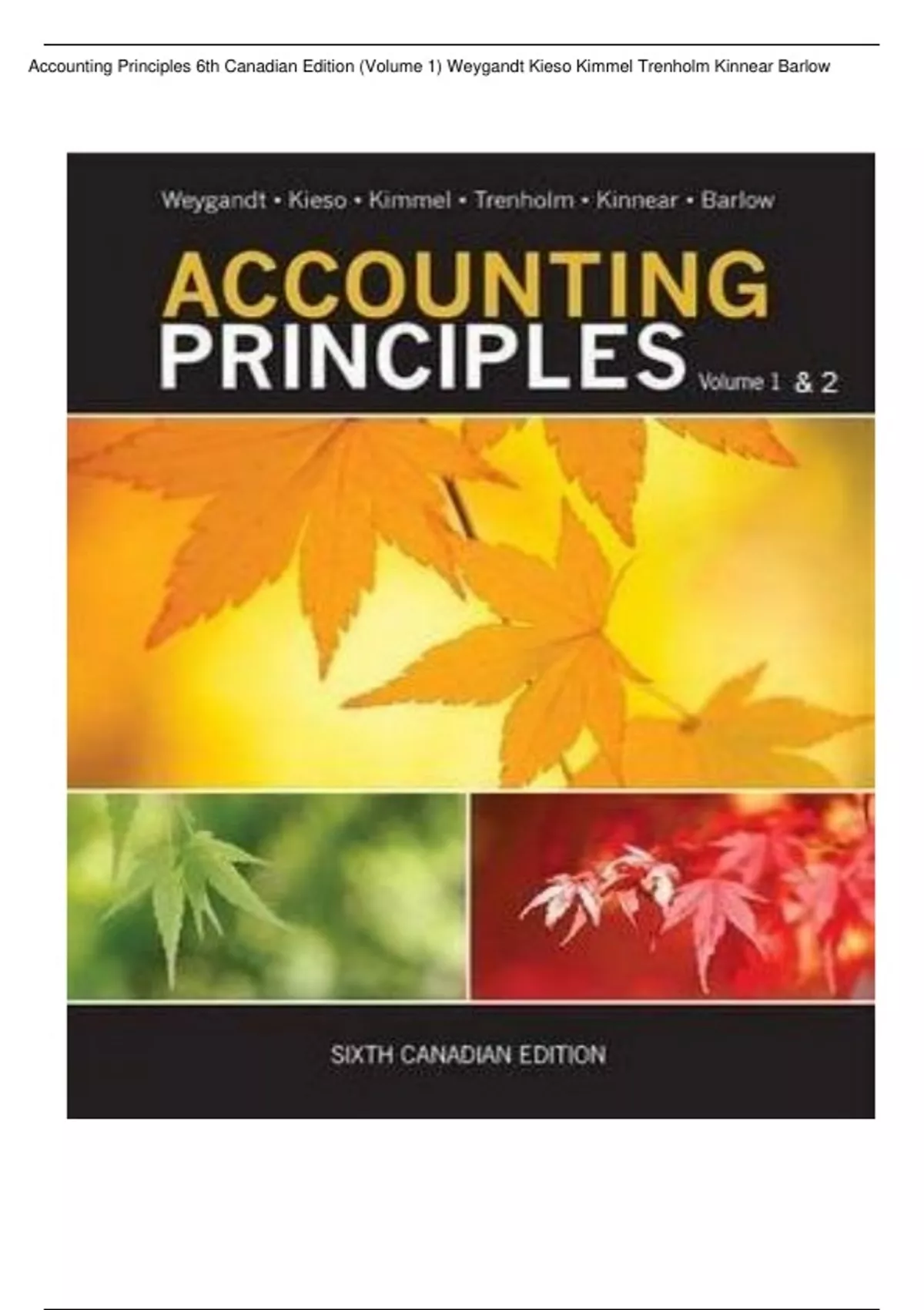 ,Accounting Principles 6th Canadian Edition (Volume 1) Weygandt Kieso Kimmel Trenholm Kinnear Barlow