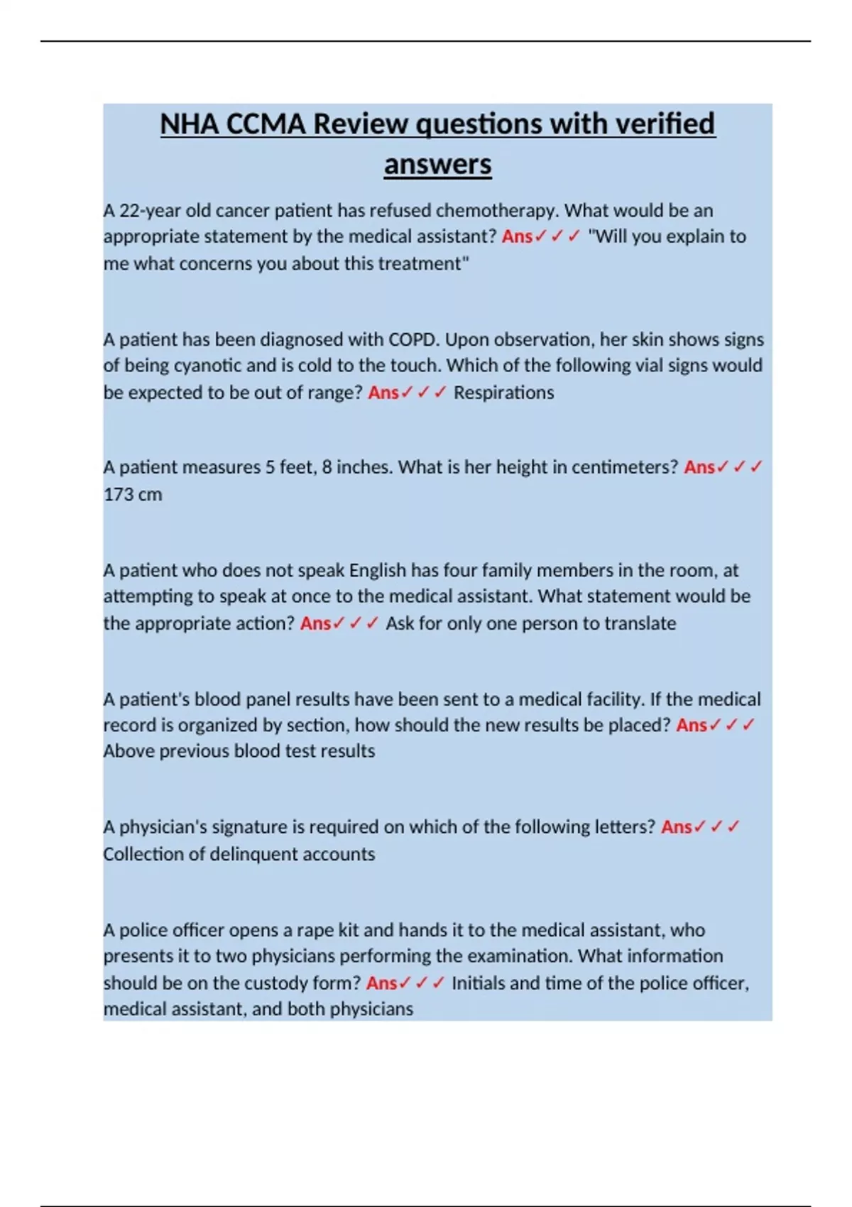 appropriate statement by the medical assistant? Ans✓✓✓ "Will you explain to