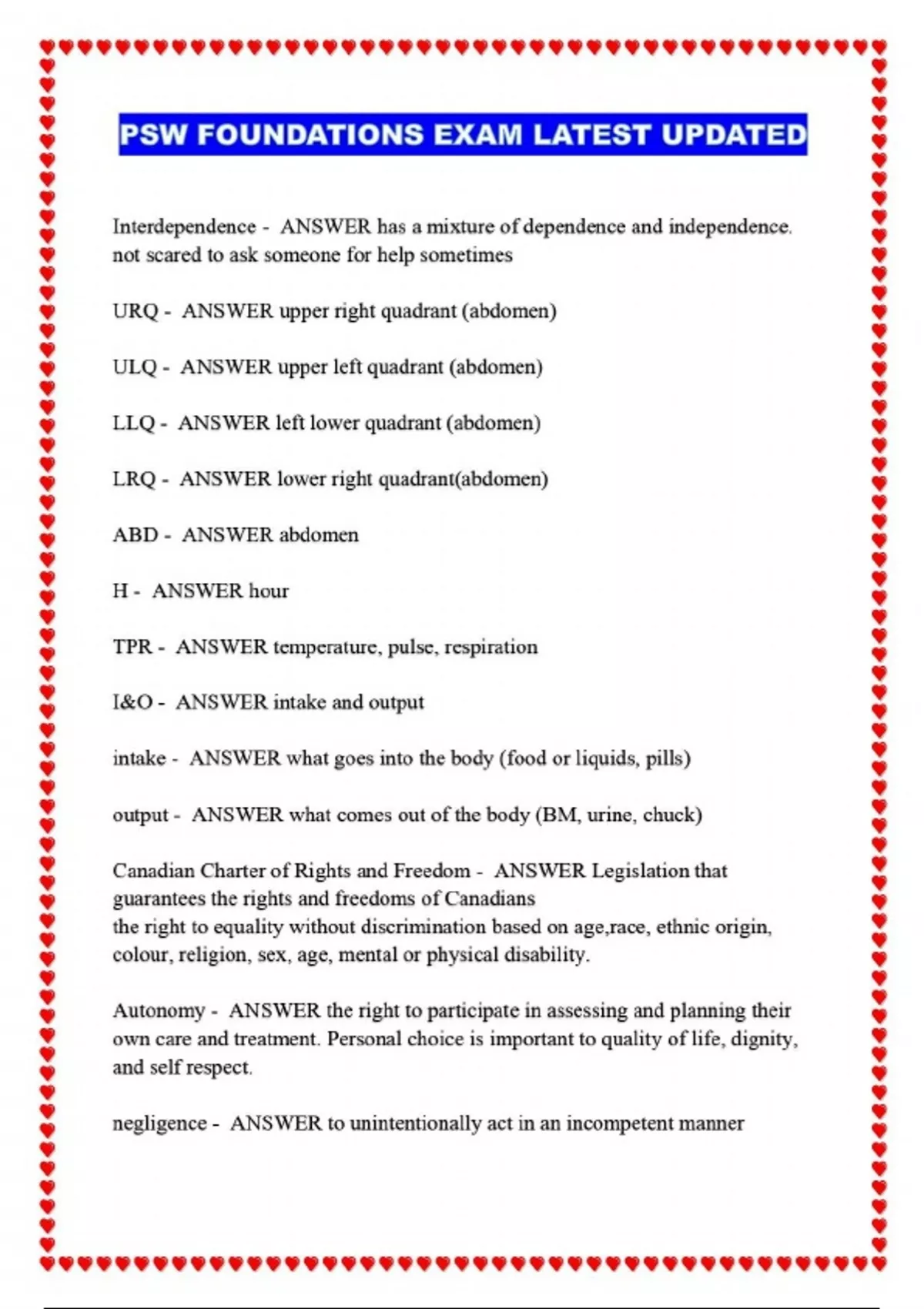 PSW FOUNDATIONS EXAM LATEST UPDATED....