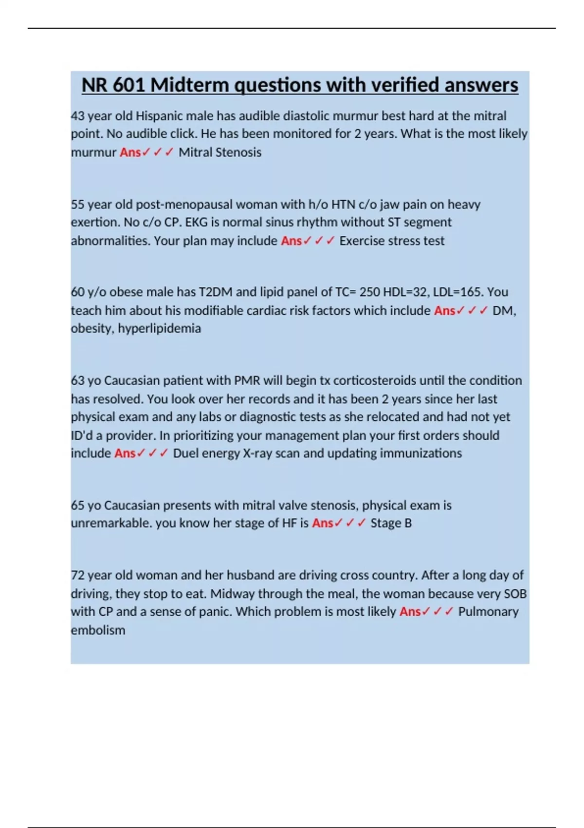 murmur Ans✓✓✓ Mitral Stenosis