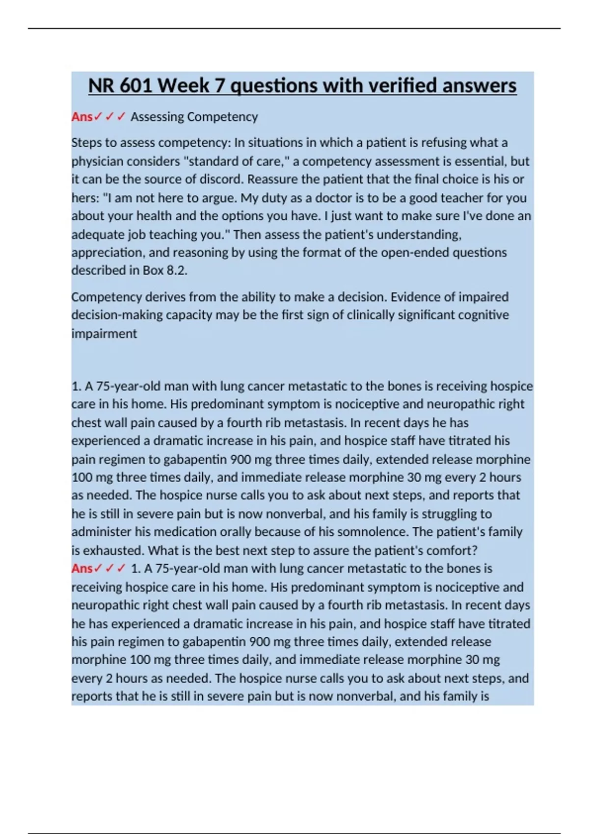 Ans✓✓✓ 1. A 75-year-old man with lung cancer metastatic to the bones is