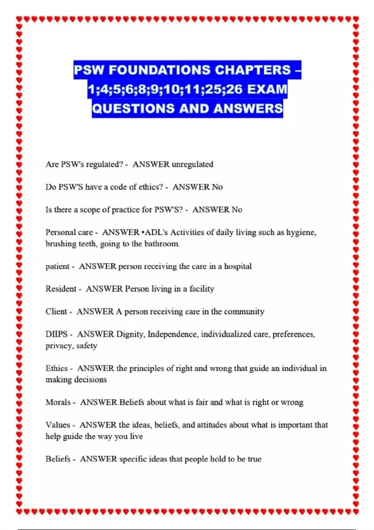PSW FOUNDATIONS CHAPTERS – 1;4;5;6;8;9;10;11;25;26 EXAM QUESTIONS AND ANSWERS