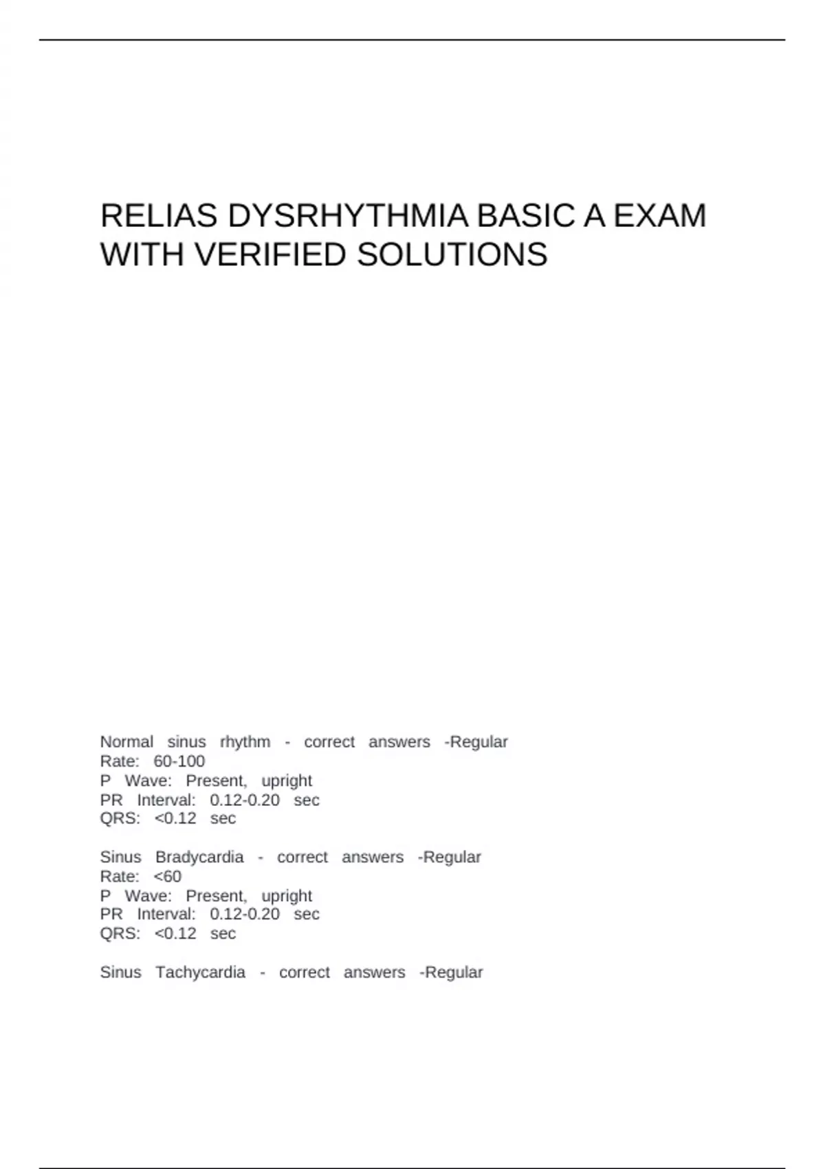 RELIAS DYSRHYTHMIA BASIC A EXAM WITH VERIFIED SOLUTIONS