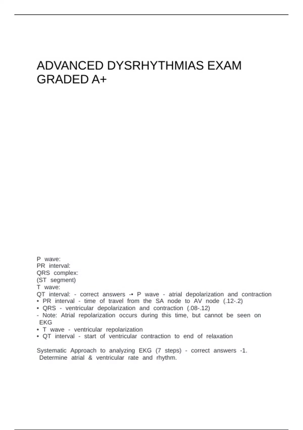 ADVANCED DYSRHYTHMIAS EXAM GRADED A+