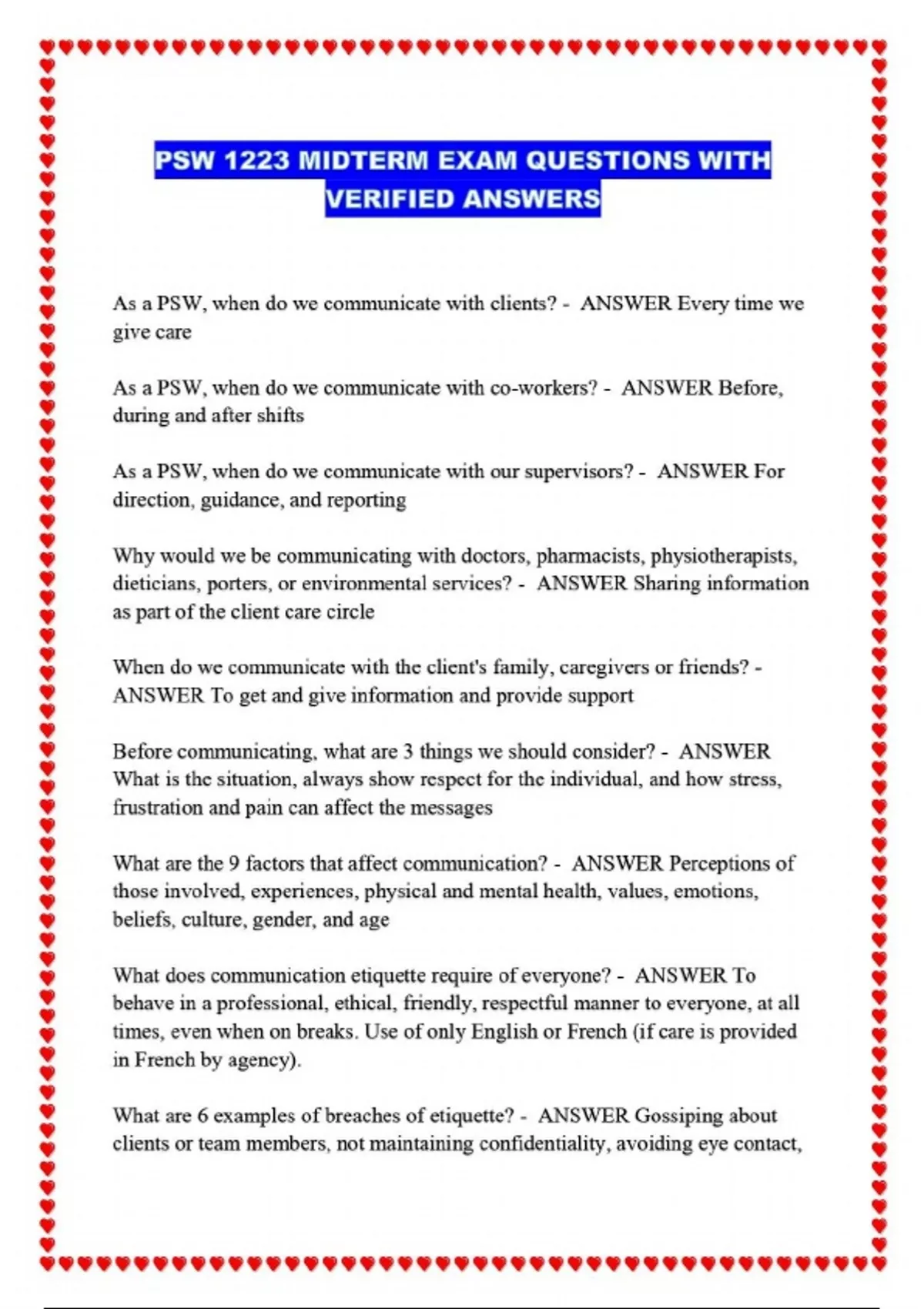 PSW 1223 MIDTERM EXAM QUESTIONS WITH VERIFIED ANSWERS