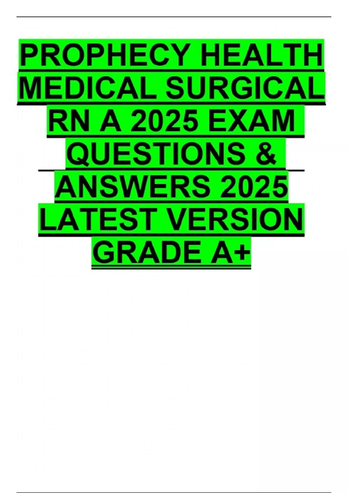 PROPHECY HEALTH MEDICAL SURGICAL RN A 2025 EXAM QUESTIONS & ANSWERS 2025 LATEST VERSION GRADE A+