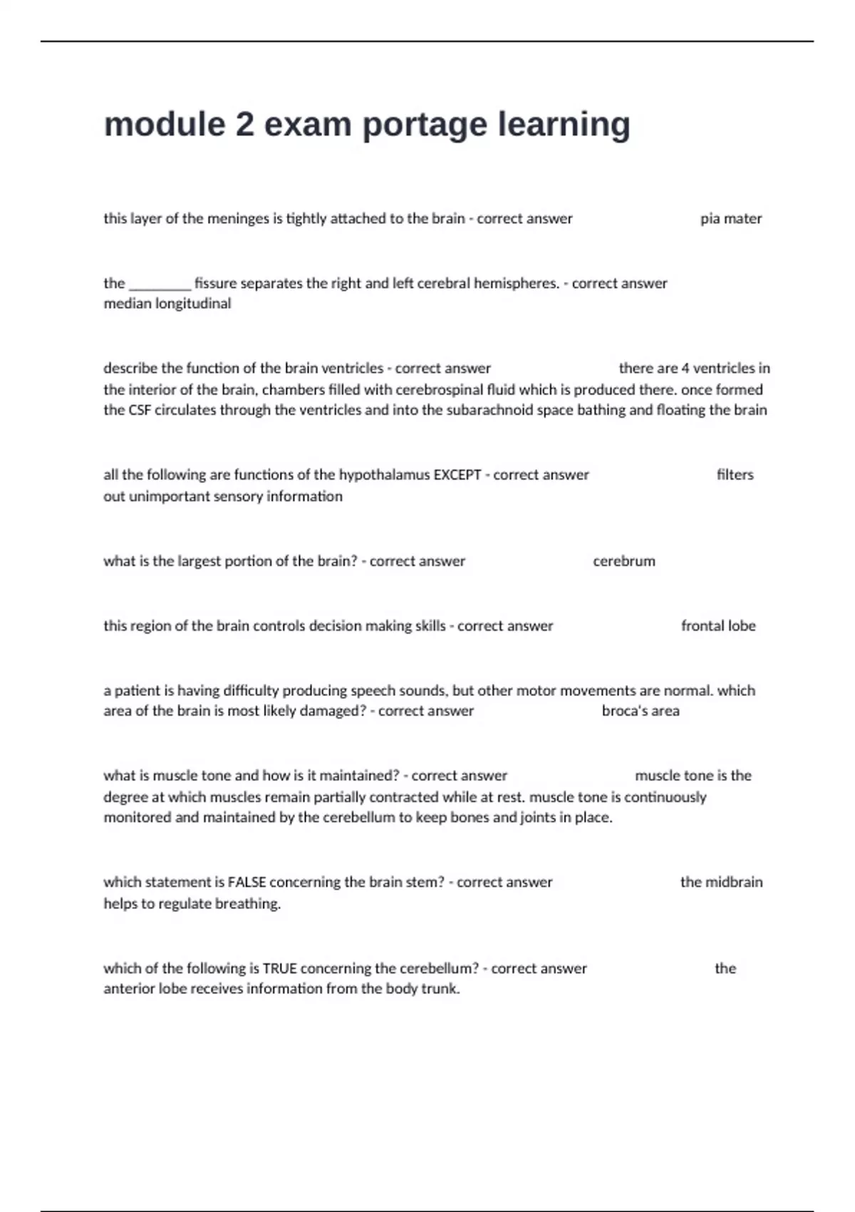 which of the following is TRUE concerning the cerebellum? - correct answer the