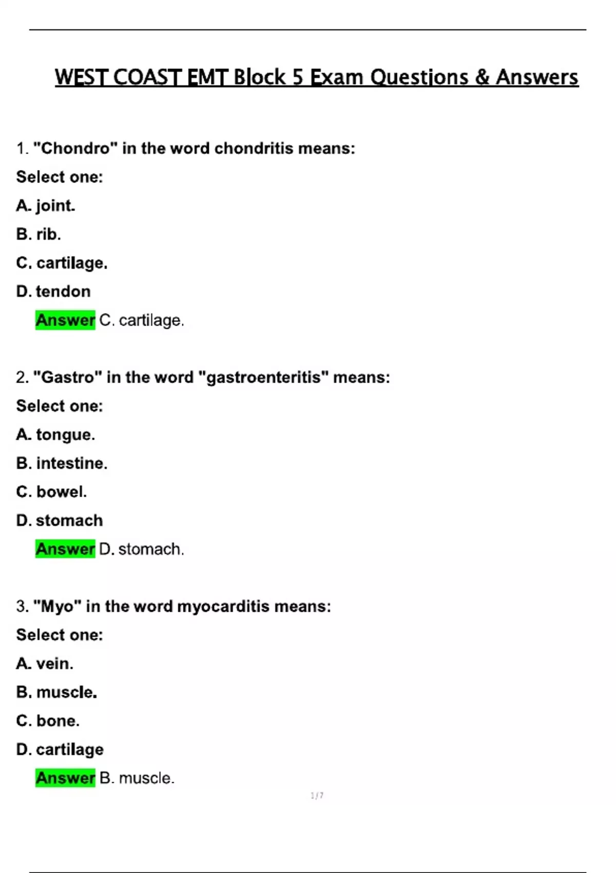 WEST COAST EMT BLOCK 5 EXAM 2025 LATEST REAL EXAM QUESTIONS & CORRECT ANSWERS 2025 / 2026