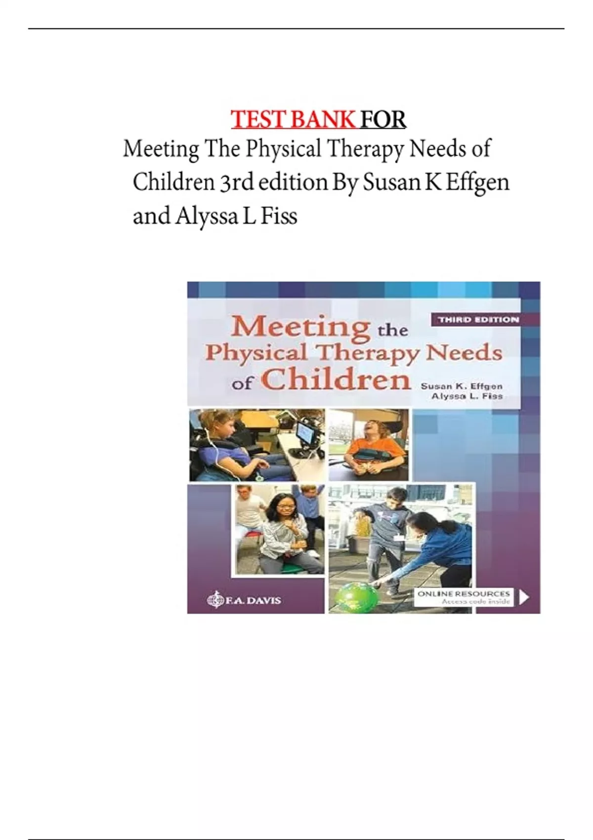 TEST BANK FOR Meeting The Physical Therapy Needs of Children 3rd edition By Susan K Effgen and Alyssa L Fiss