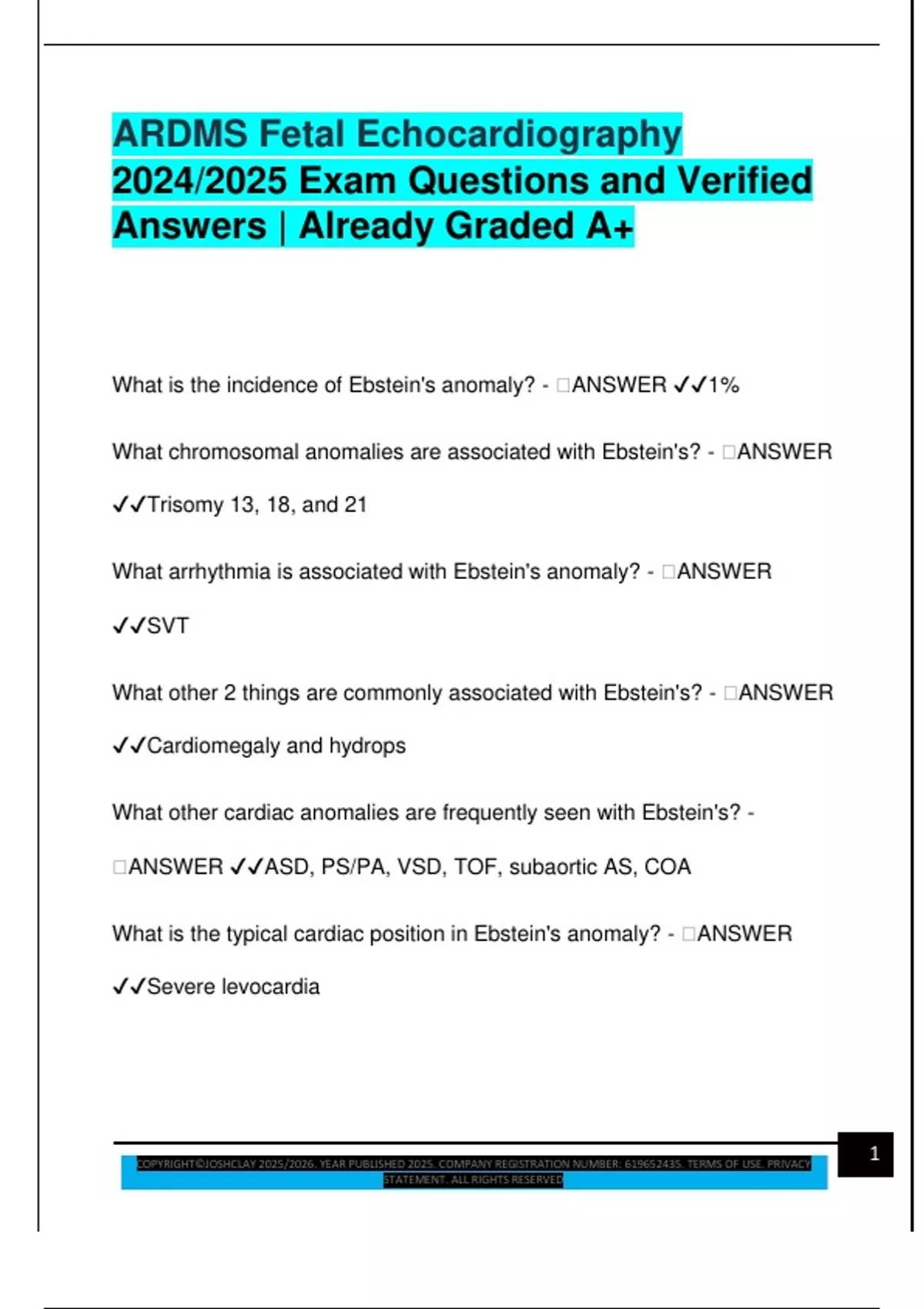 Patau Syndrome - 🧠ANSWER ✔✔Trisomy 13