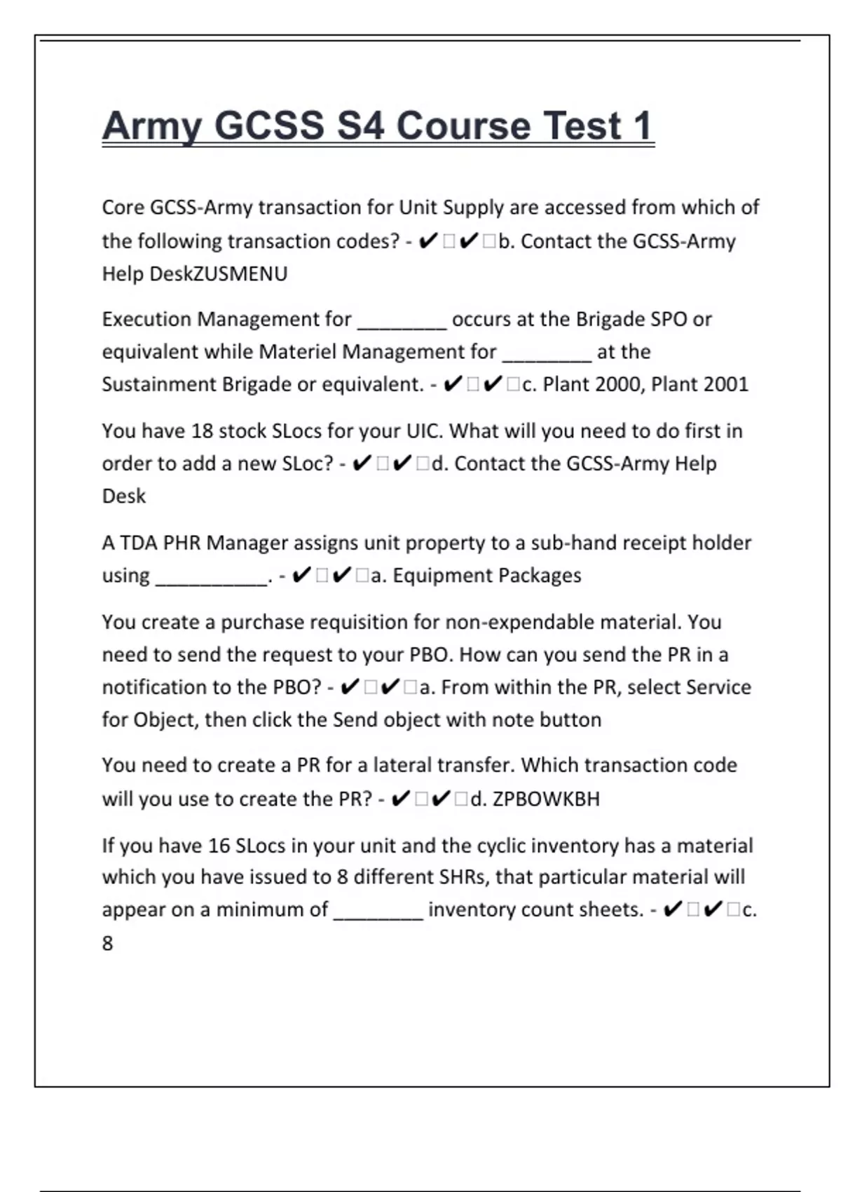 the following transaction codes? - ✔ ✔ b. Contact the GCSS-Army