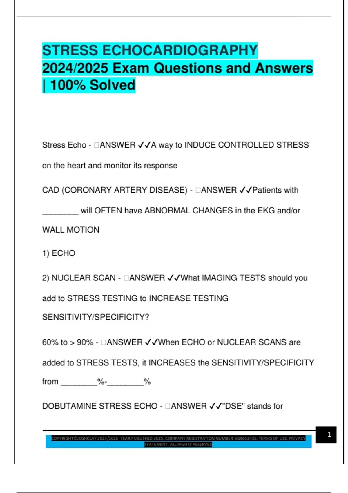 EXERCISE STRESS ECHO - 🧠ANSWER ✔✔"ESE" stands for
