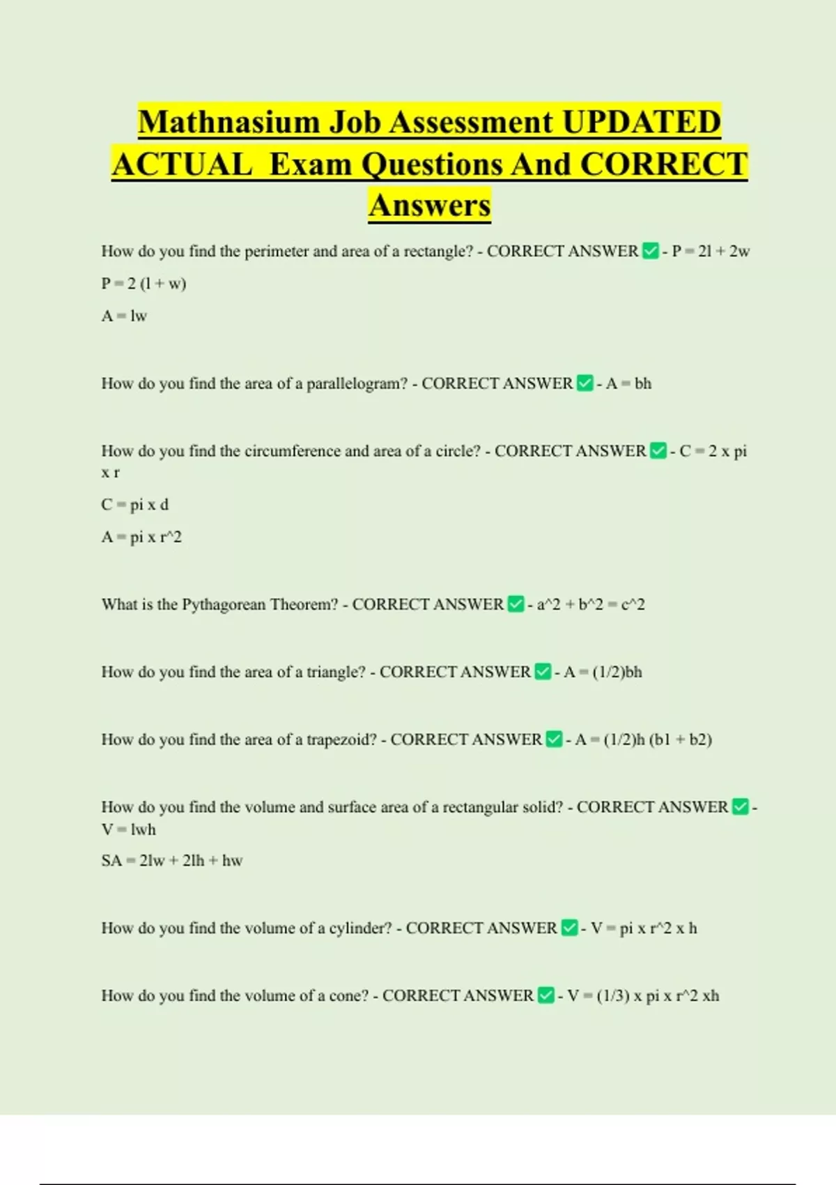 , How do you find the volume of a square pyramid? - CORRECT ANSWER - V = (1/3) x (area