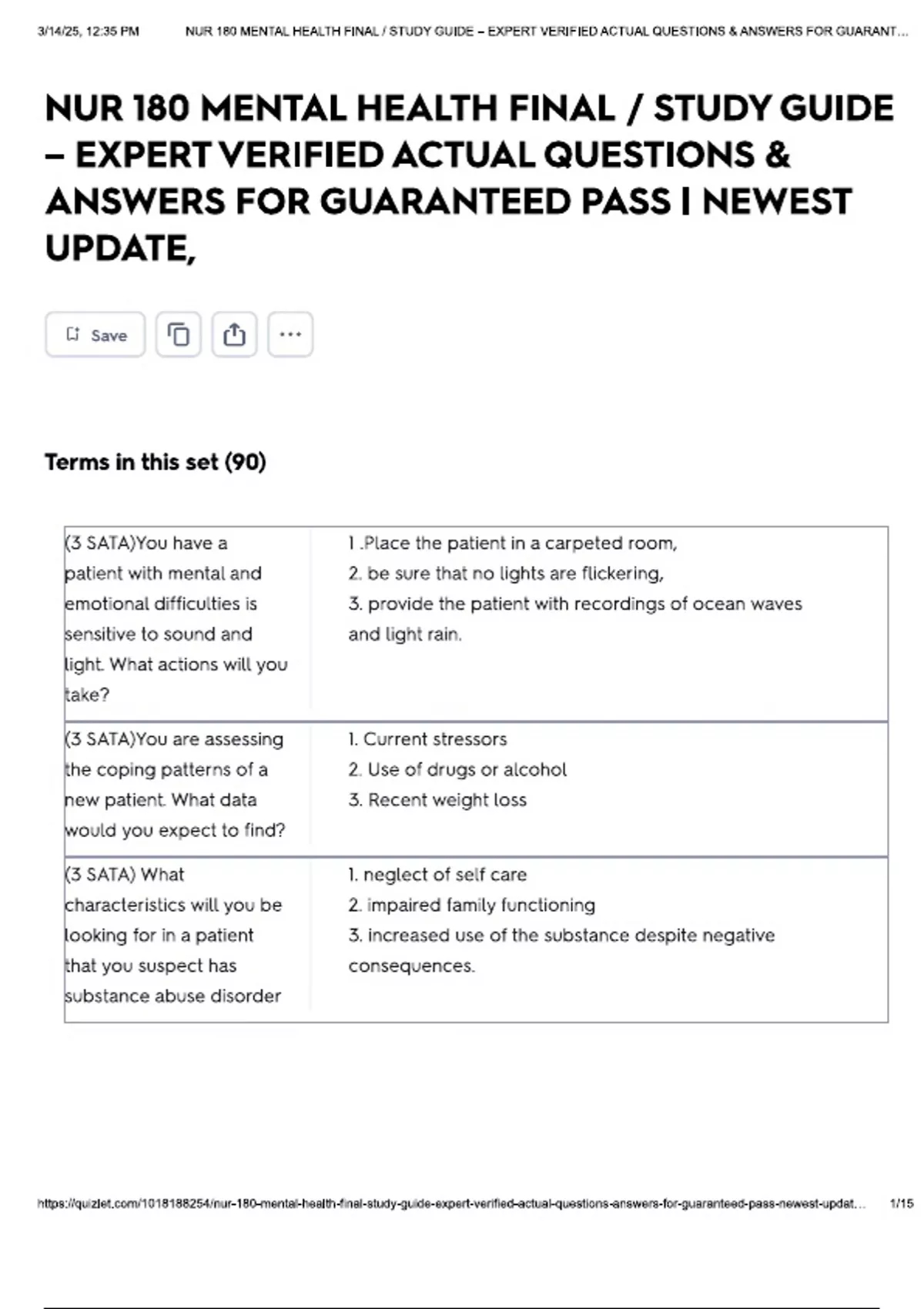 NUR 180 MENTAL HEALTH FINAL / STUDY GUIDE – EXPERT VERIFIED ACTUAL QUESTIONS & ANSWERS FOR GUARANTEED PASS | NEWEST UPDATE,