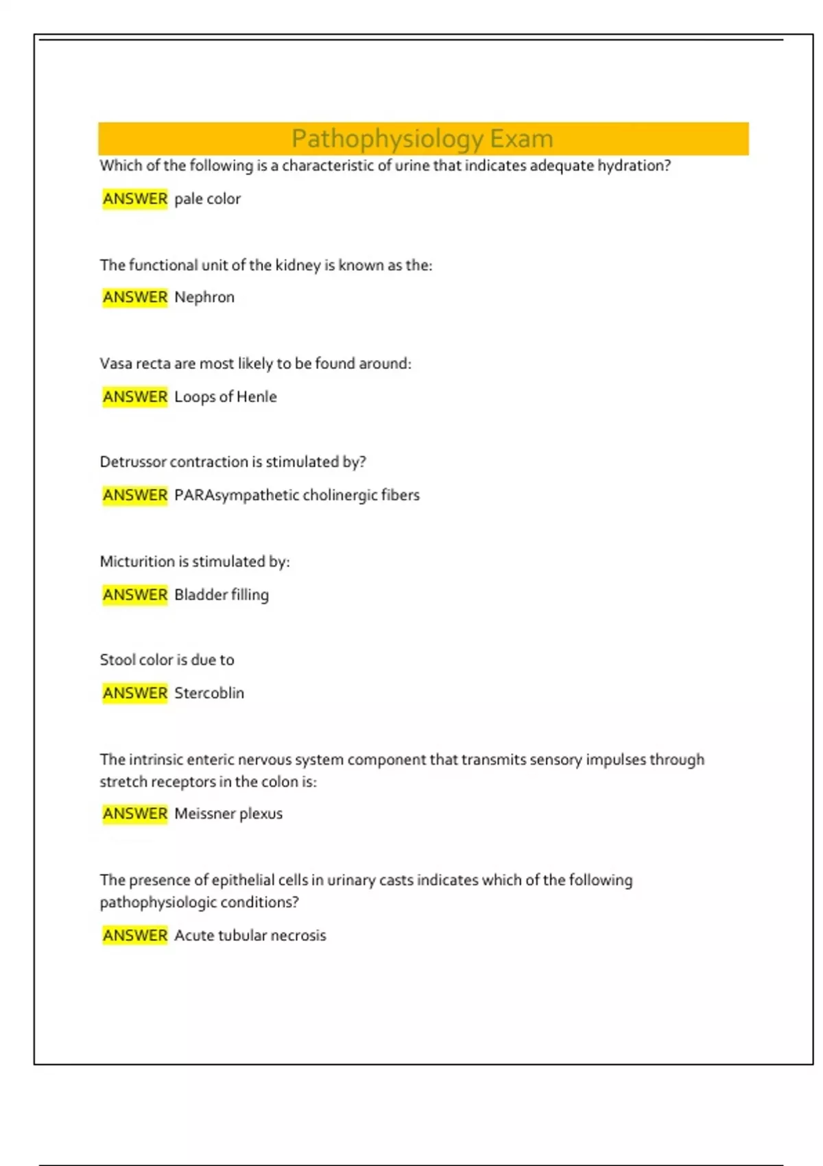 ANSWER Acute tubular necrosis