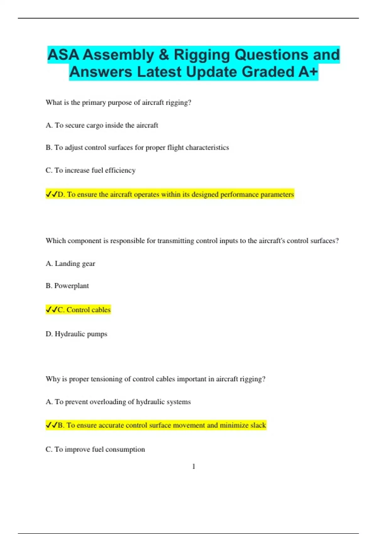 ✔✔B. To ensure accurate control surface movement and minimize slack