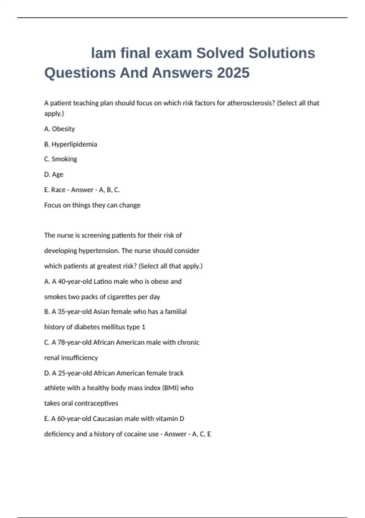 lam final exam Solved Solutions Questions And Answers 2025