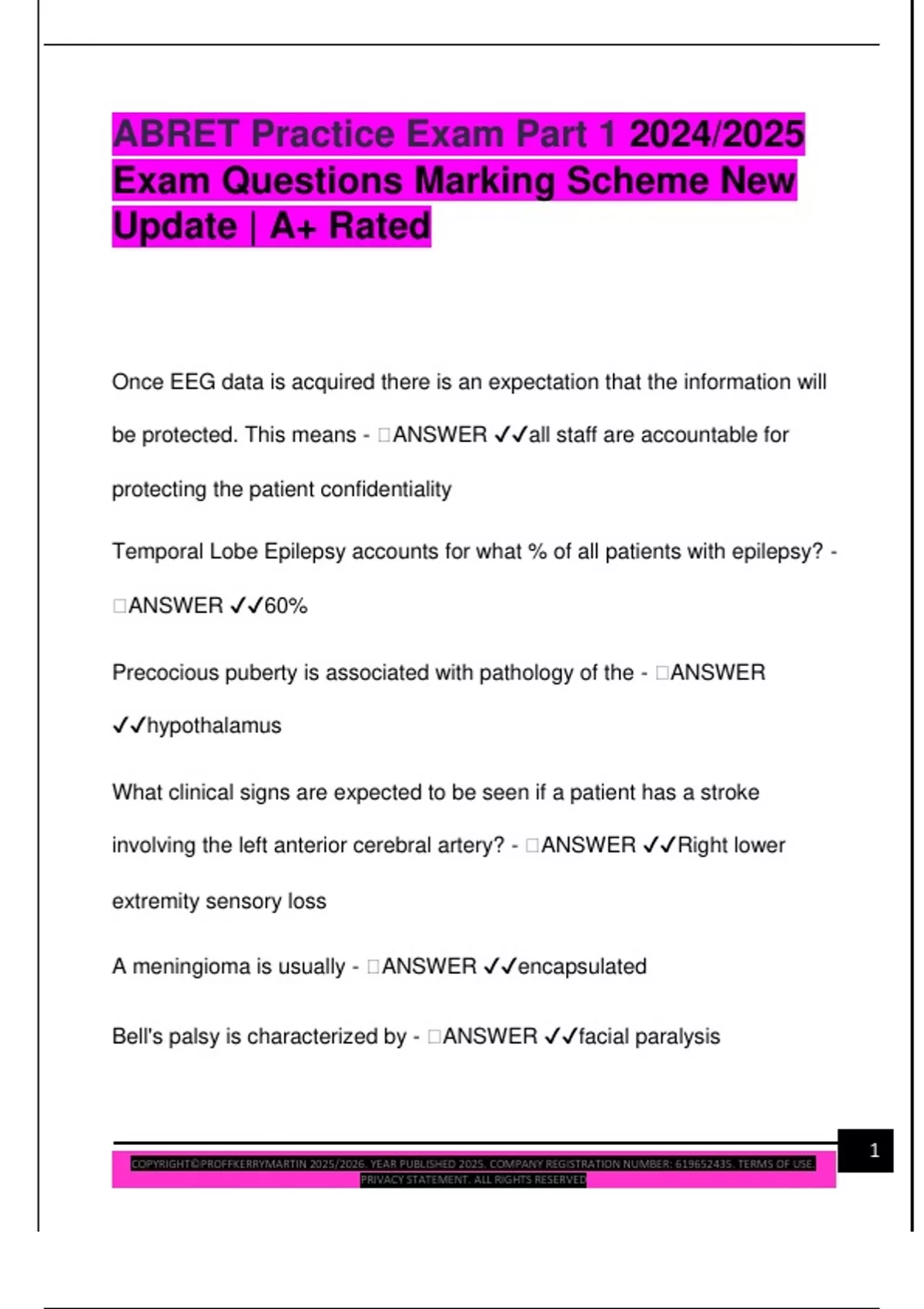 ABRET Practice Exam Part 1 2024/2025 Exam Questions Marking Scheme New Update | A+ Rated