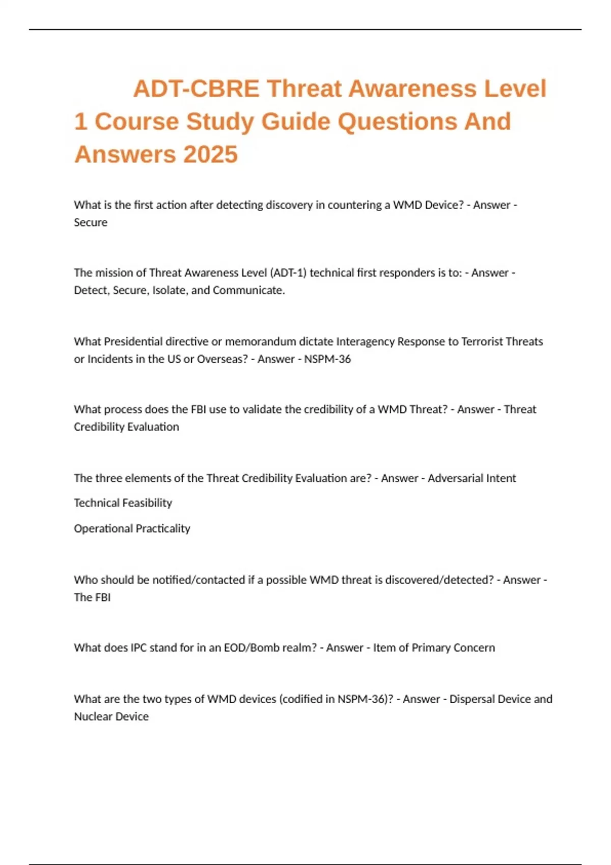 The mission of Threat Awareness Level (ADT-1) technical first responders is to: - Answer -