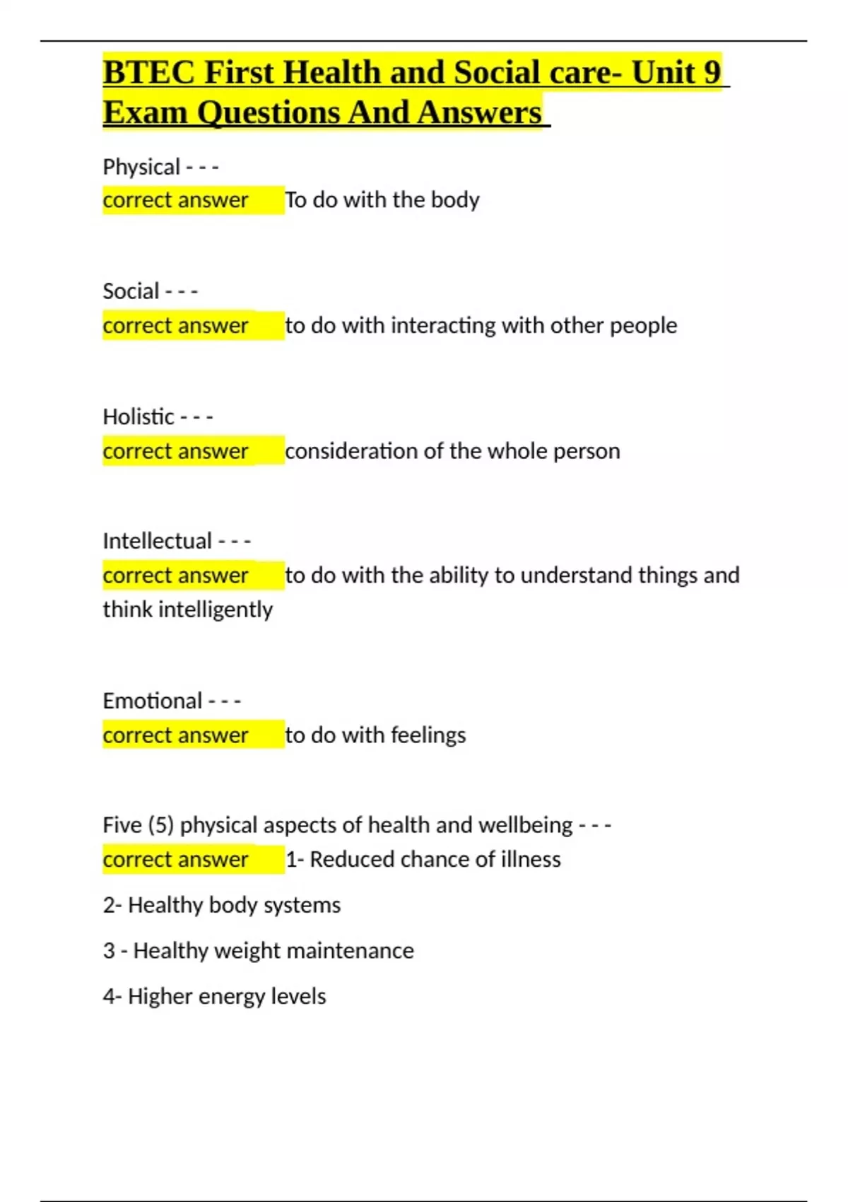 BTEC First Health and Social care- Unit 9 Exam Questions And A