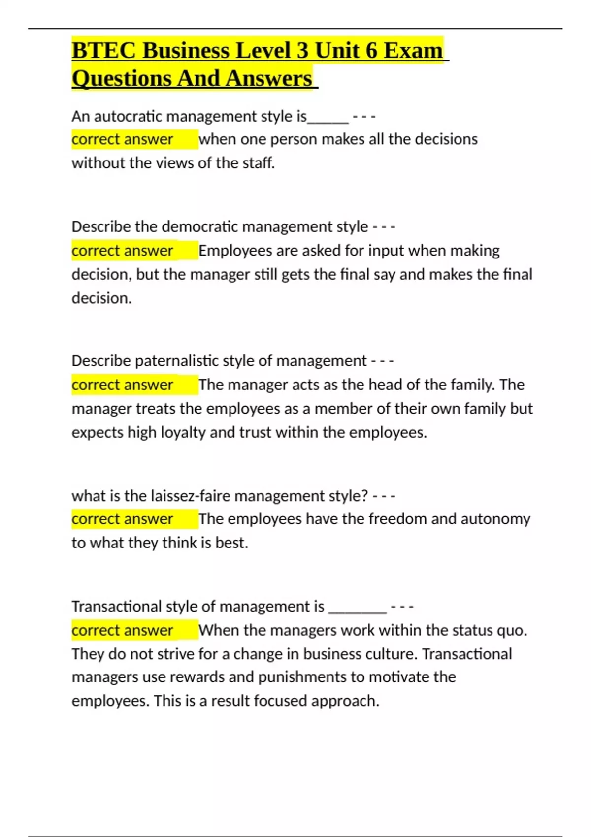 BTEC Business Level 3 Unit 6 Exam Questions And A