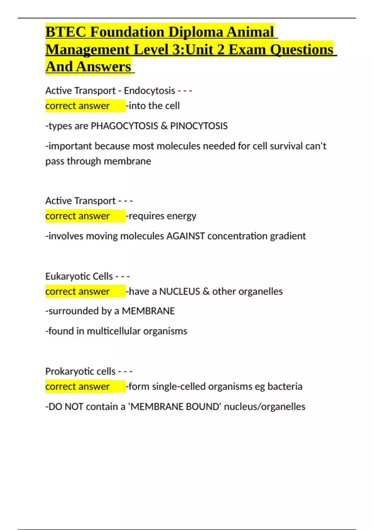 BTEC Foundation Diploma Animal Management Level 3 Unit 2 Exam Questions And A