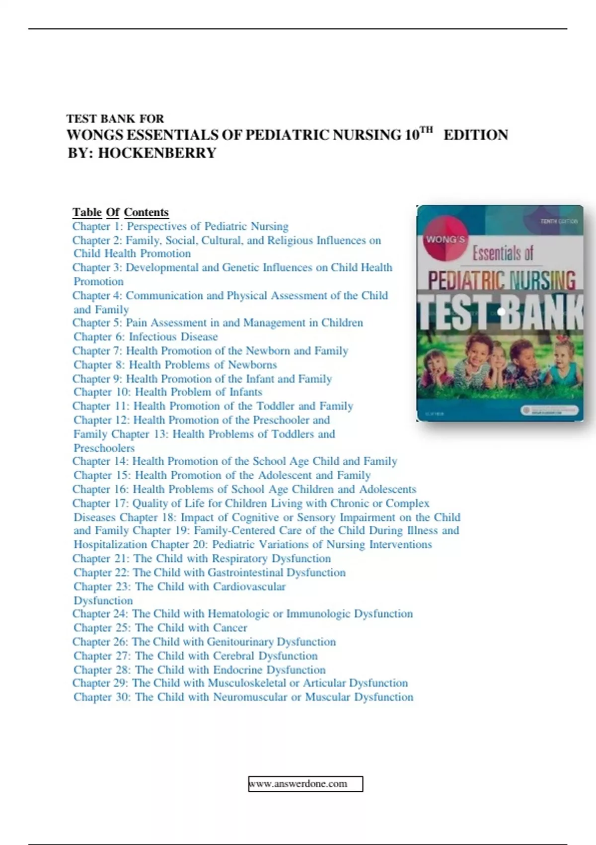 TEST BANK FOR WONGS ESSENTIALS OF PEDIATRIC NURSING 10TH EDITION BY HOCKENBERRY