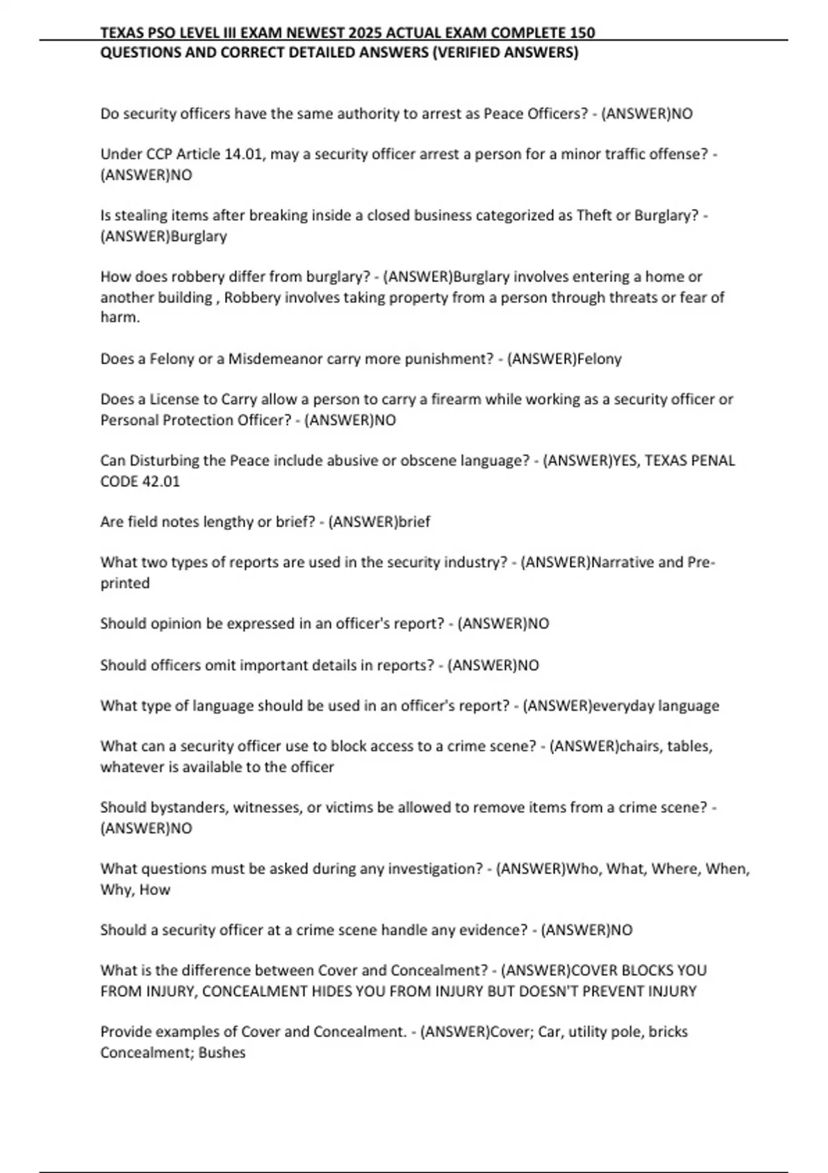 , TEXAS PSO LEVEL III EXAM NEWEST 2025 ACTUAL EXAM COMPLETE 150